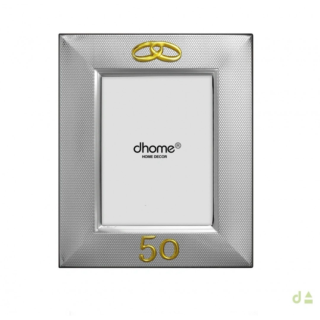 Moldura DHOME em PVD prateado, alusiva aos 50 anos de casamento.