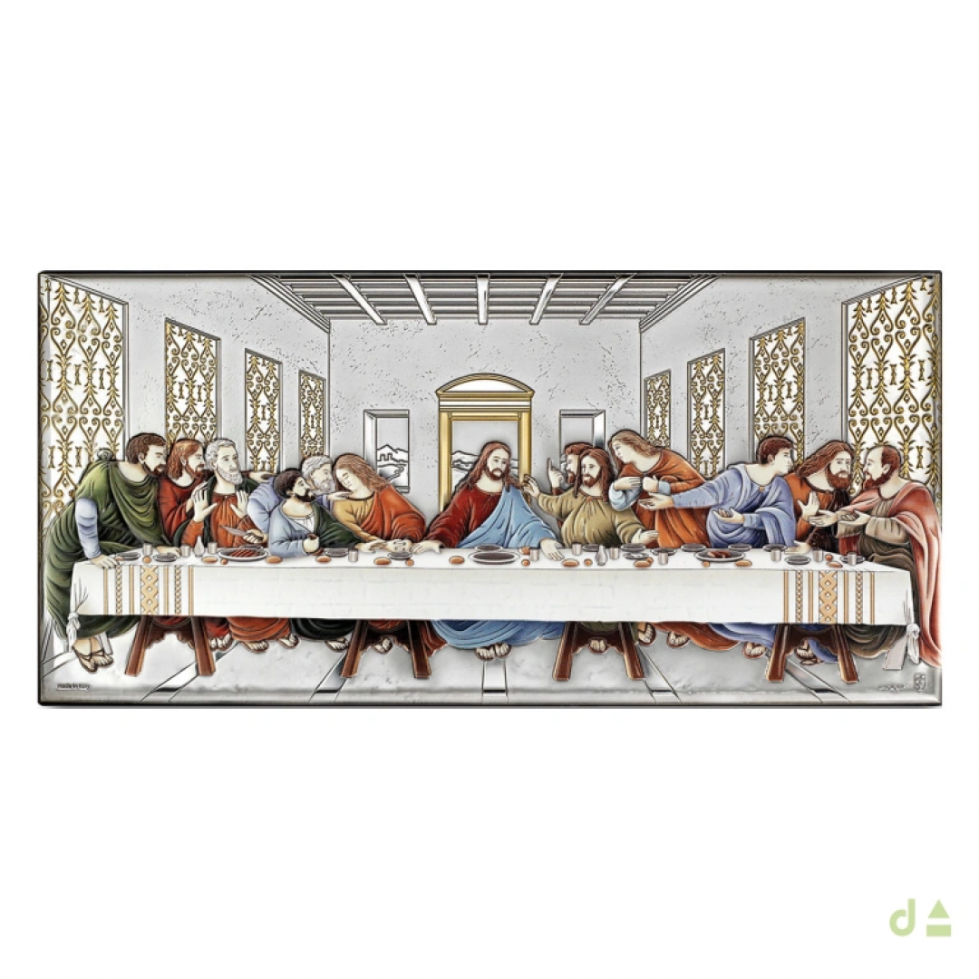 Quadro DHOME última ceia em pvd prateado colorido. Medidas:11x22cm
