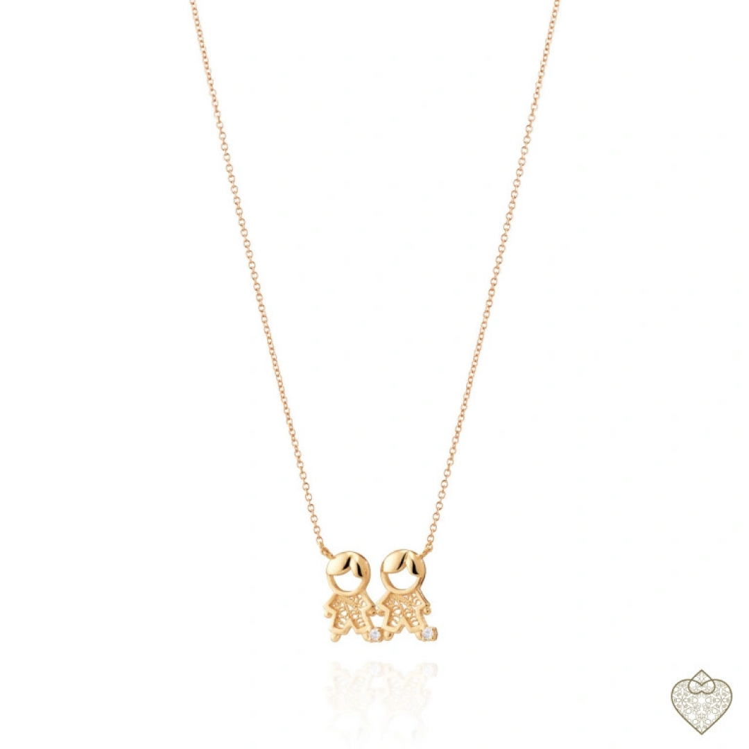 Colar SAUDADE 2 meninos, em filigrana, o característico padrão faz com que esta se destaque, tornando-a na escolha perfeita para quem deseja algo único e elegante. A Saudade Jewels é uma marca portuguesa de joias que homenageia a filigrana portuguesa. Cada joia é uma obra de arte que transmite elegância em qualquer ocasião. Presentes elegantes e intemporais com sofisticação.