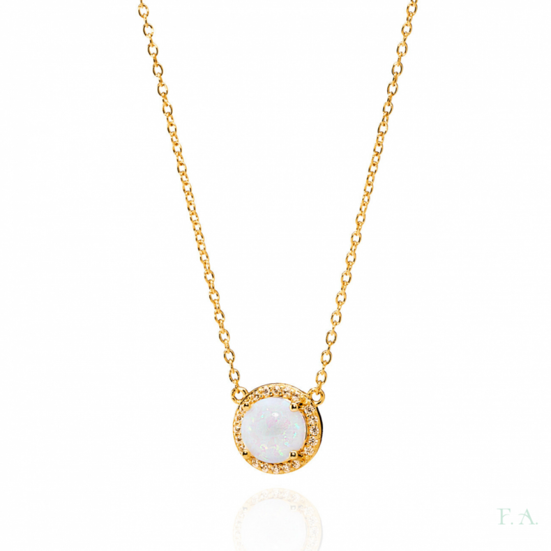 Colar em prata dourada com madrepérola e zircónias à volta. Desenvolvido para dar um toque de graça e sofisticação ao seu visual, eleve o seu estilo sem esforço com este colar encantador.
