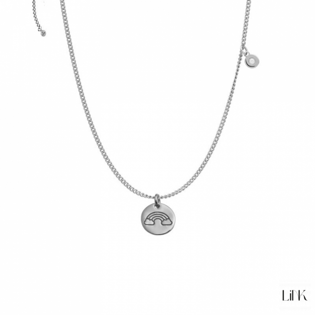 Colar My LINK Style- Arco Íris, em prata de lei 925‰. O Arco Íris simboliza a renovação e a esperança, é o elemento de ligação entre o céu e a terra. Perfeito para uma mulher moderna e diversificada, beneficiando e realçando o seu estilo e personalidade. A LINK é uma marca de joias jovem e irreverente para mulheres que gostam de brilhar.