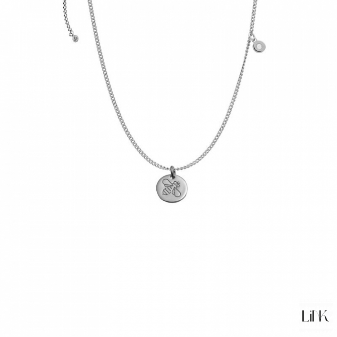 Colar My LINK Style- Abelha, em prata de lei 925‰. A abelha simboliza abundância, desenvolvimento, ordem, diligência, lealdade, cooperação e nobreza. Está também associada à fertilidade, à biodiversidade e à riqueza. Perfeito para uma mulher moderna e diversificada, beneficiando e realçando o seu estilo e personalidade. A LINK é uma marca de joias jovem e irreverente para mulheres que gostam de brilhar.