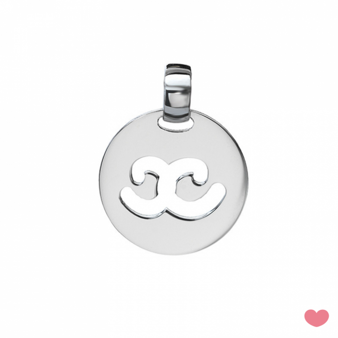 Medalha PASSION letra em prata com banho de ródio, tem 2cm de diâmetro é o ideal para usar em fios.