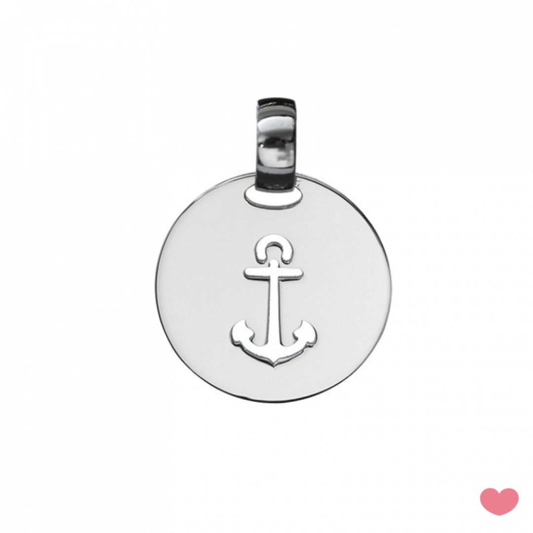 Medalha PASSION Âncora em prata com banho de ródio, tem 2cm de diâmetro é o ideal para usar em fios.