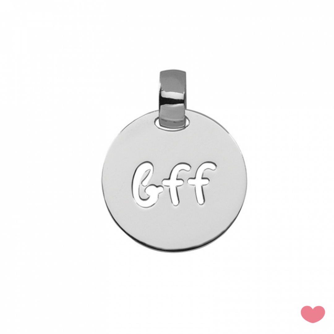 Medalha PASSION BFF em prata com banho de ródio, tem 2cm de diâmetro é o ideal para usar em fios.