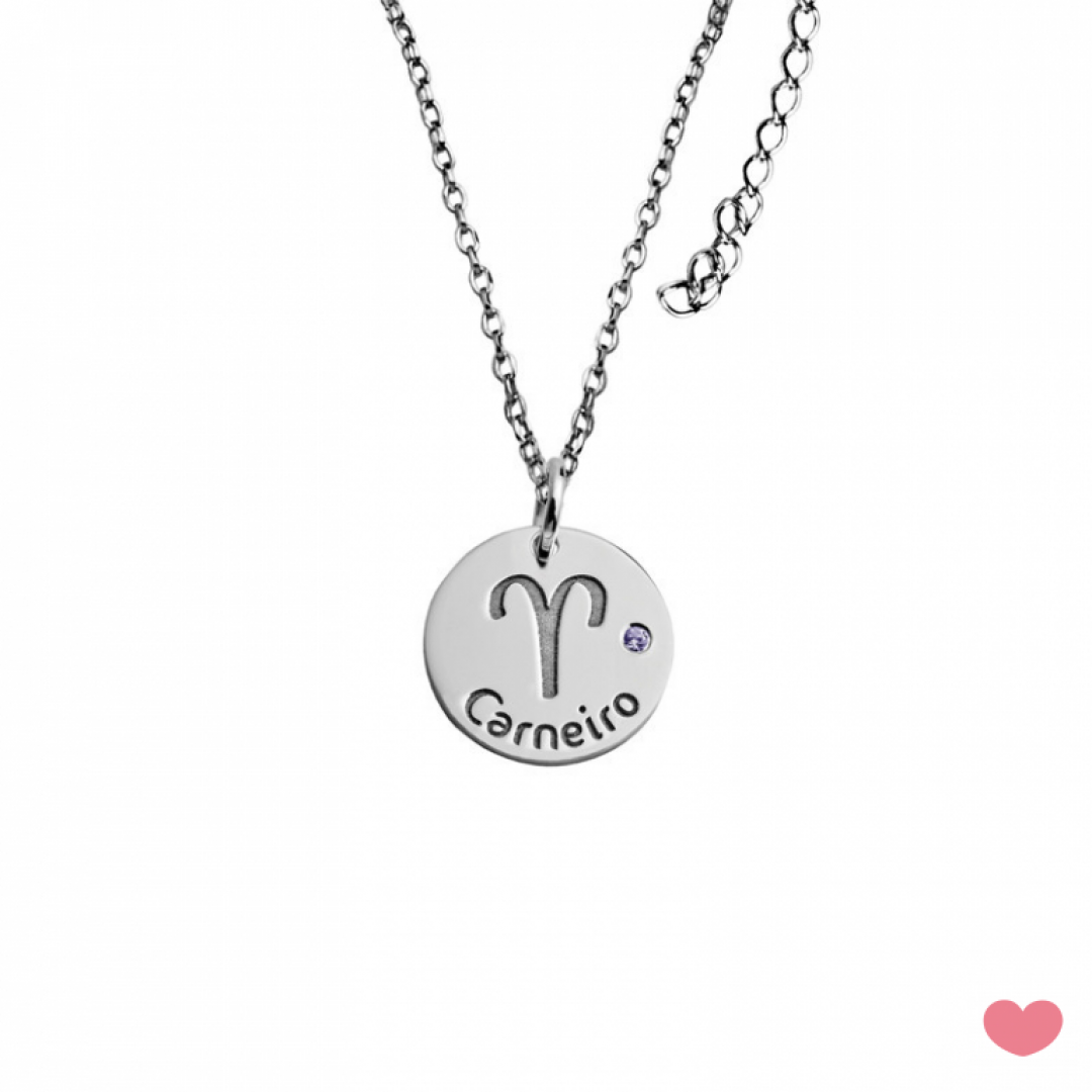 Colar PASSON signo Carneiro em prata com banho de ródio, acompanhado de uma zircónia com a cor do signo. Uma boa sugestão para oferecer num aniversário. Medalha 1.4cm