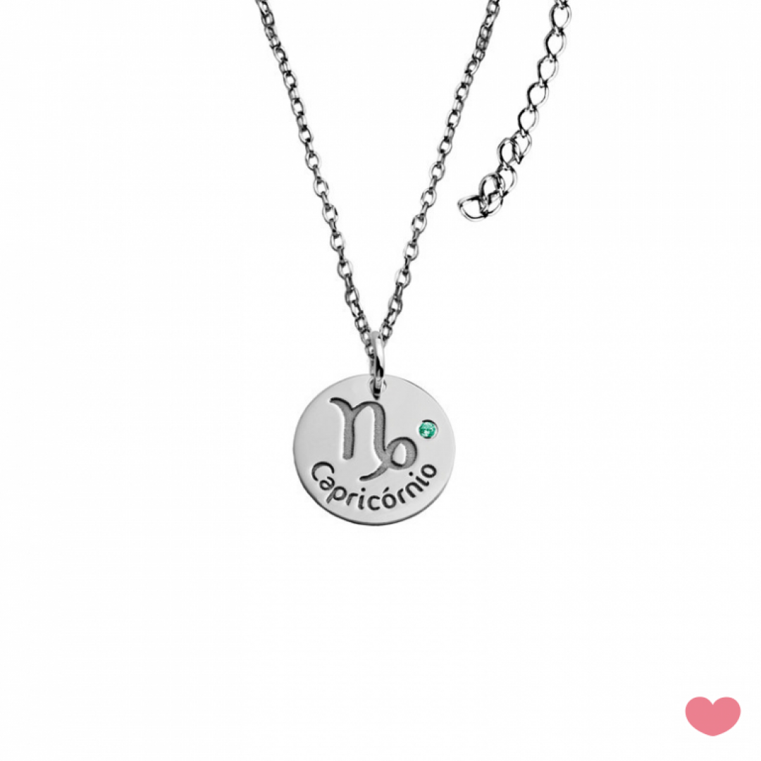 Colar PASSON signo Capricórnio em prata com banho de ródio, acompanhado de uma zircónia com a cor do signo. Uma boa sugestão para oferecer num aniversário. Medalha 1.4cm