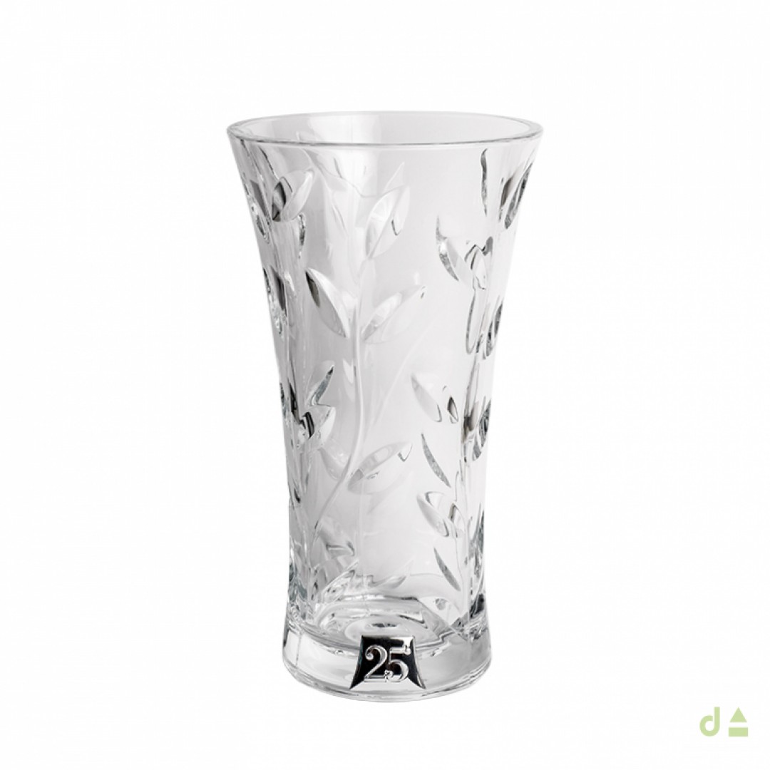 Jarra DHOME em cristal BOHEMIA trabalhada, vem acompanhada de uma chapa em prata bilaminada alusiva aos 25 anos.