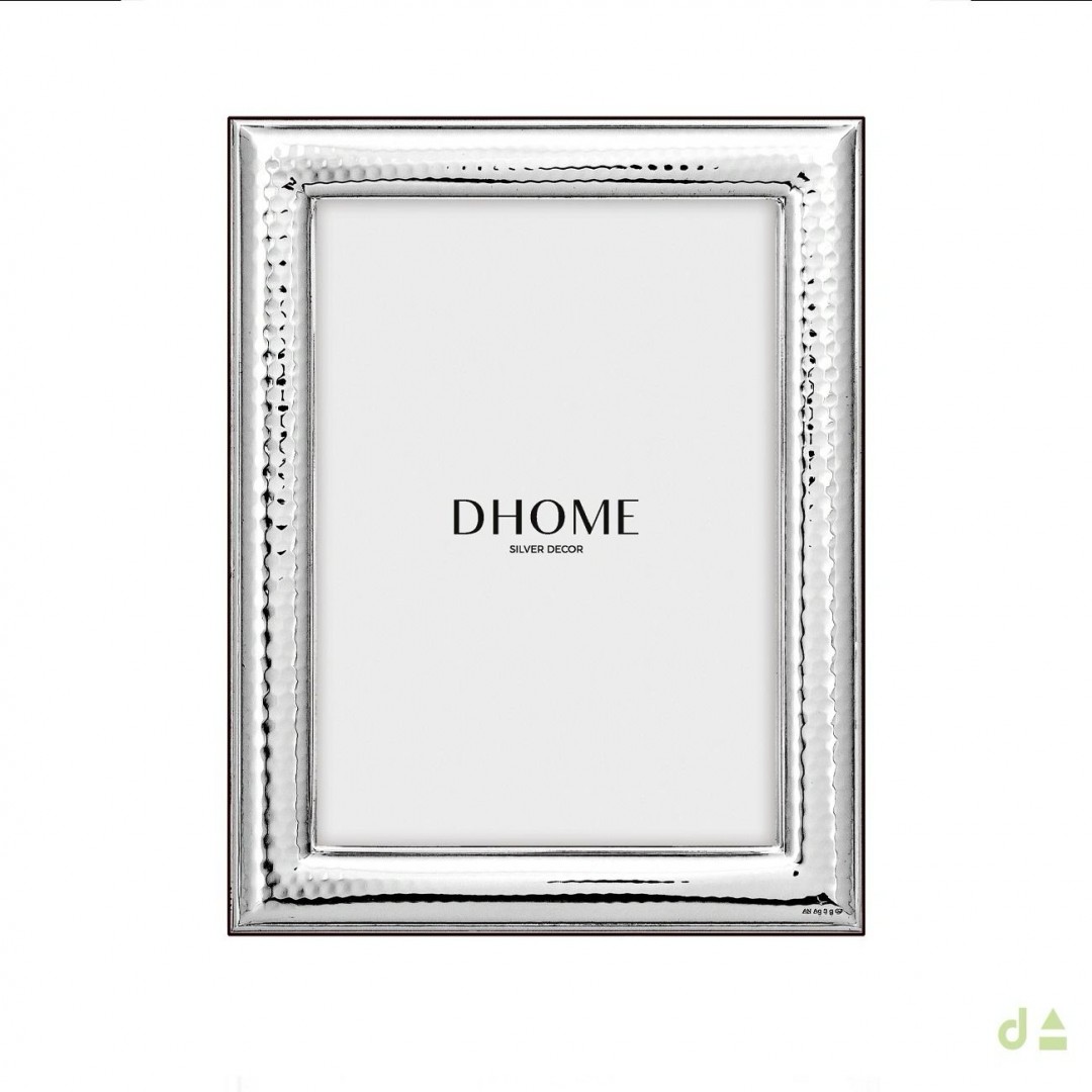 Moldura DHOME em PVD prateado, com beira fina martelada. Uma peça simples e elegante que combina com qualquer decoração.