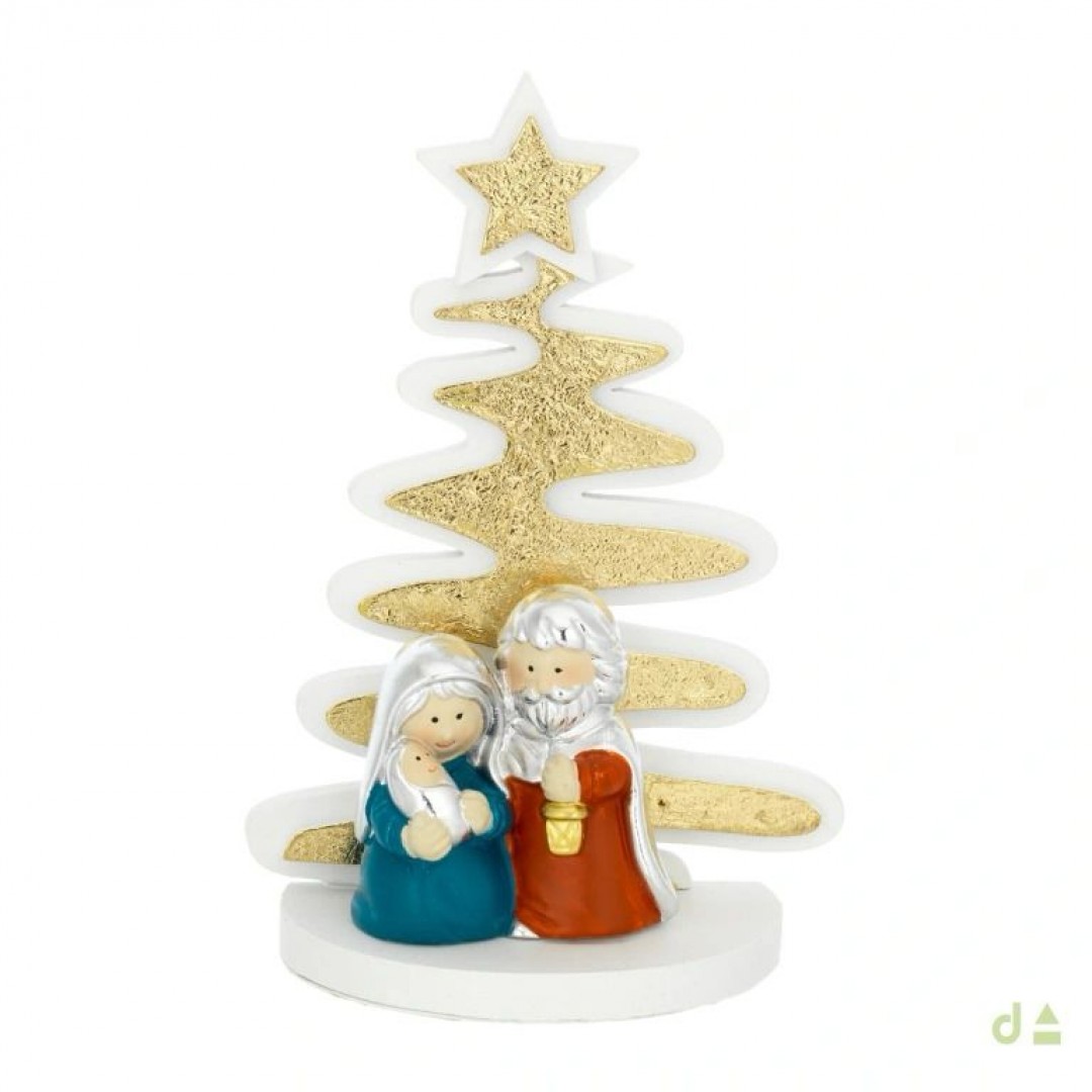 Presépio DHOME em PVD prateado, com sagrada família colorida.