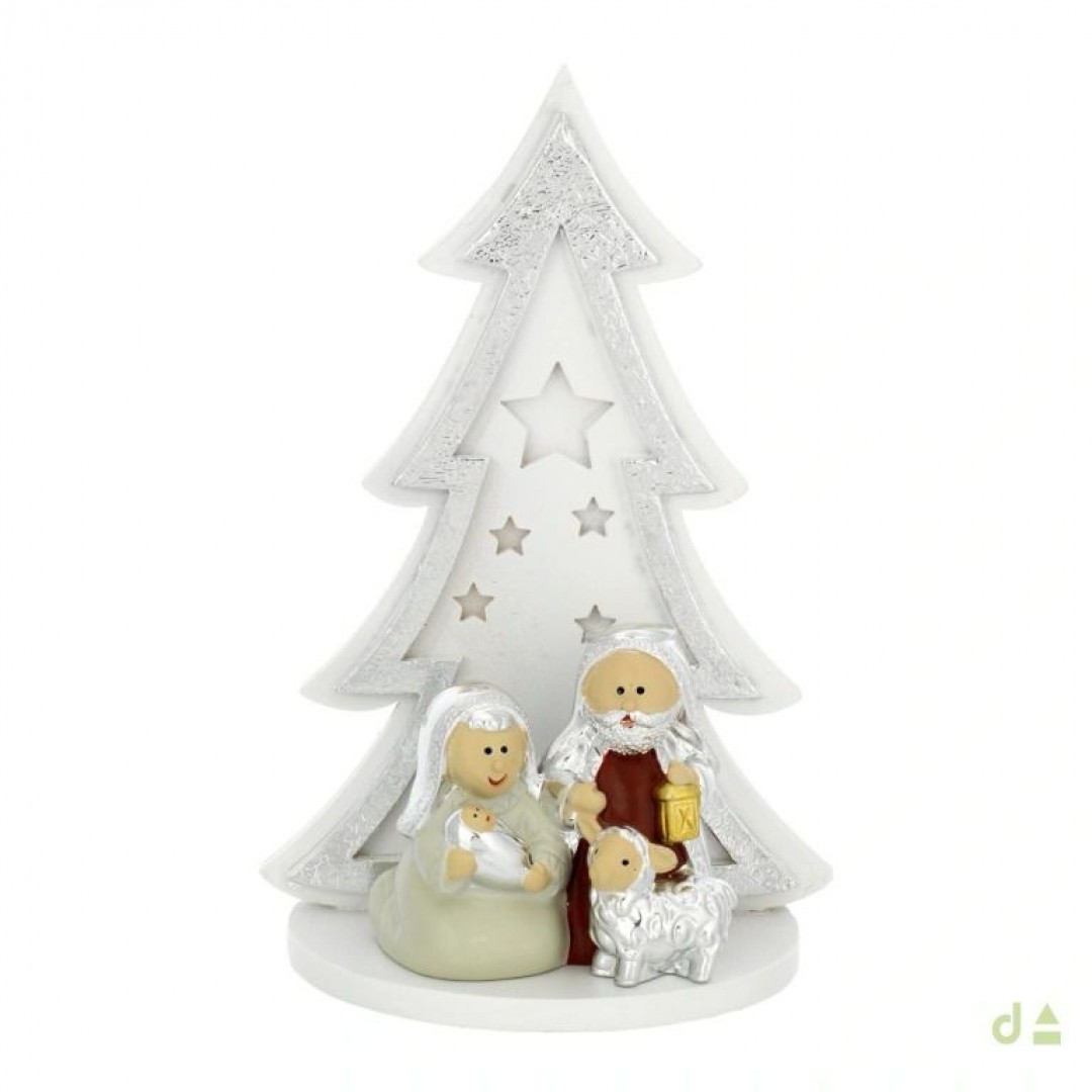 Presépio DHOME em PVD prateado com sagrada família colorida.