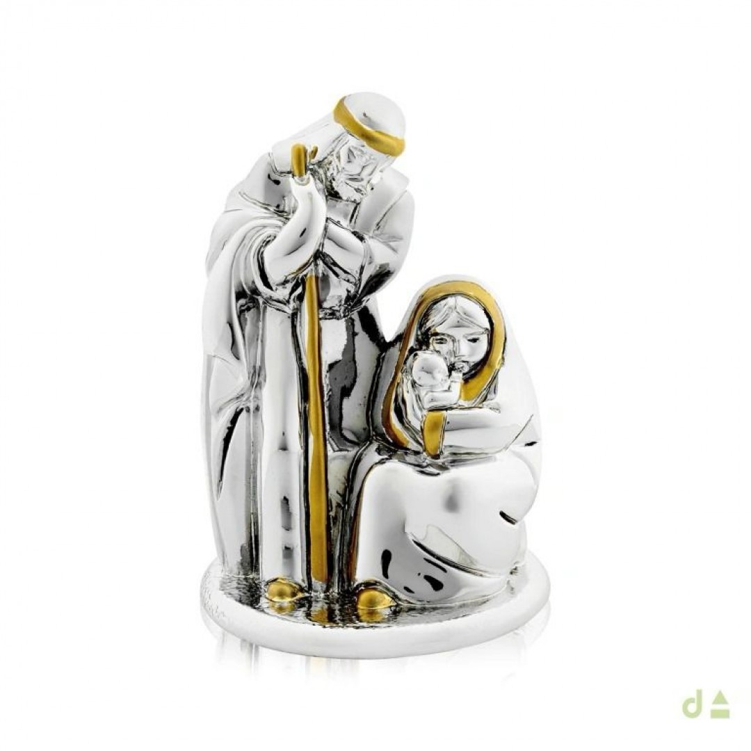 Presépio DHOME sagrada família em prata bilaminada, com apontamentos de dourado.