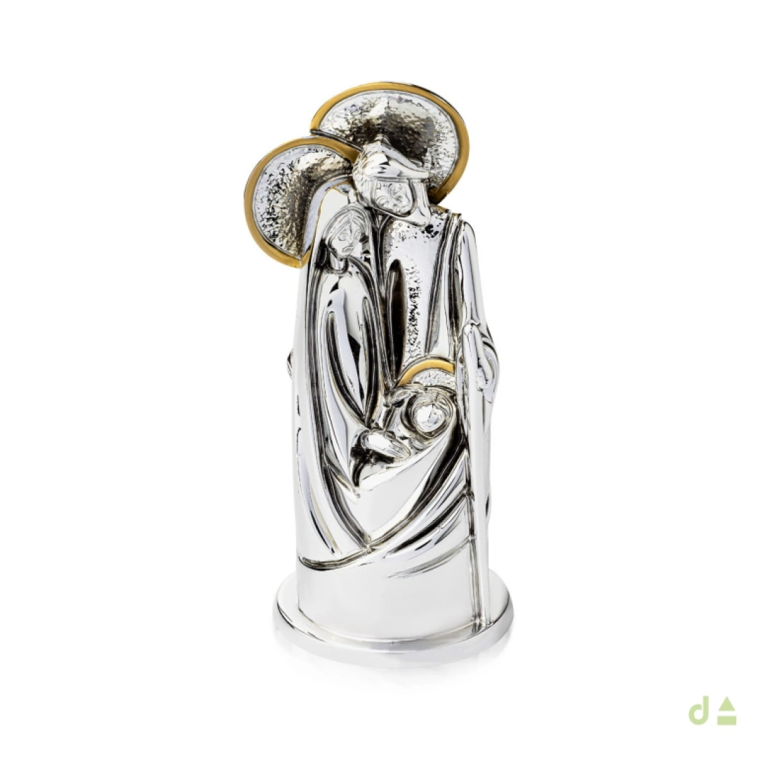 Presépio DHOME sagrada familia em prata bilaminada, com apontamentos de dourado.