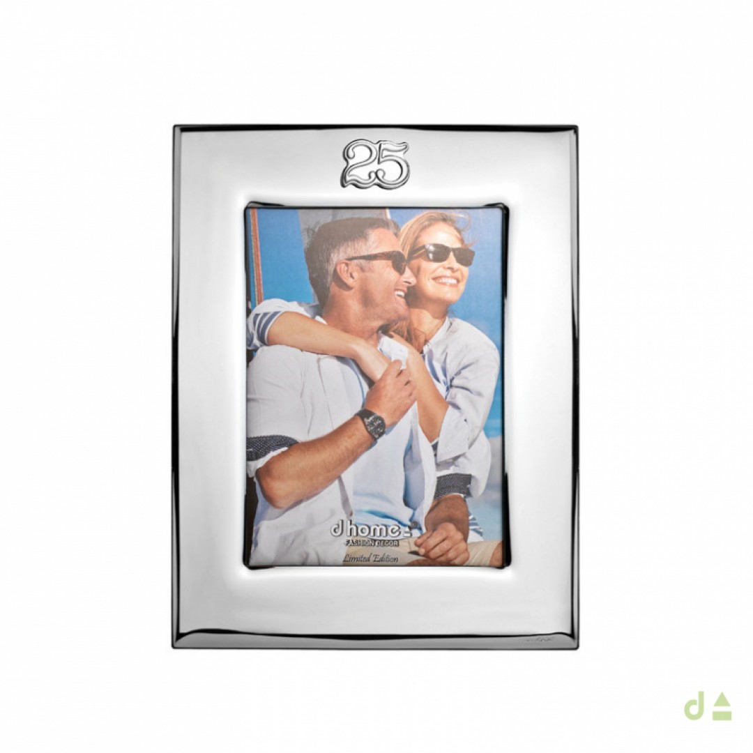 Moldura DHOME em PVD prateado, lisa alusiva aos 25 anos de casamento.