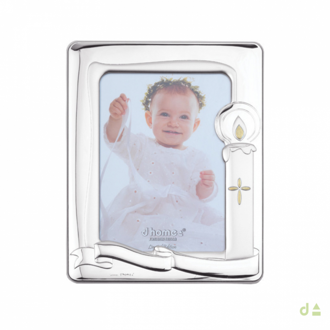 Moldura Dhome em PVD prateado, alusiva ao batismo. Beira 3cm, dimensões da foto 13x18cm.