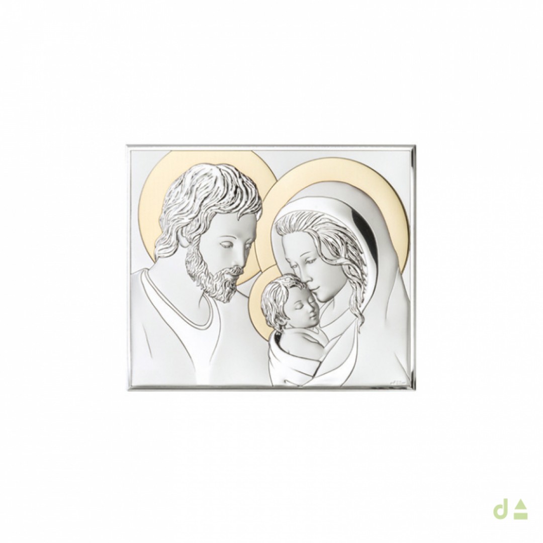 Quadro DHOME em PVD pratedo bicolor com sagrada família. Vem com suporte incluído.