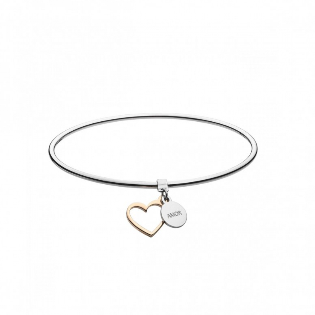 Escrava One Jewels Energy Blessing Amor OJEBMBA01-L. As joias One Jewels, peças únicas que vestem sensualidade e feminilidade. As 7 escravas são uma representação das 7 bençãos para uma vida em plenitude com boas energias. Sendo elas: Amor, Sorte, Saúde, Sucesso, Felicidade, Prosperidade e Família e Amigos. Ainda permitem a colocação de um travão para um pack de 3 escravas. São prateadas com medalha de logótipo sendo que a benção pode ser prateada ou bicolor. Formato redondo sem fecho.