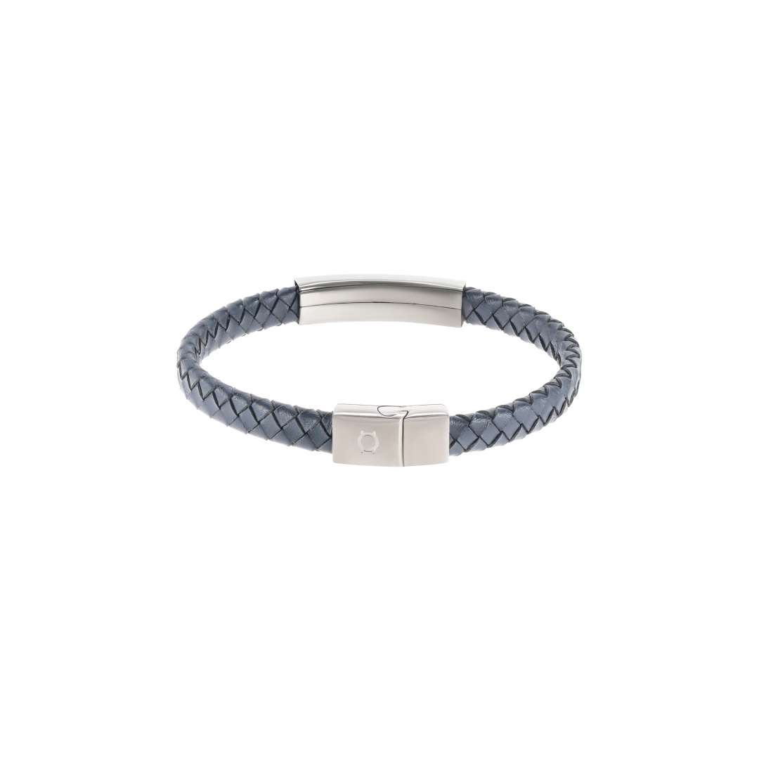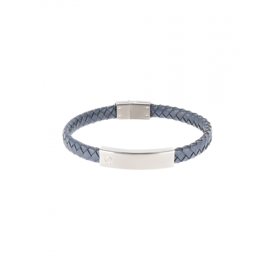 A pulseira One Men Maven é composta por uma trança de pele azul com uma barra de metal prateado e um fecho de encaixe magnético também em prateado. O acabamento brilhante mas elegante do metal confere um toque mais edgy à pulseira complementando na perfeição com a pele azul.