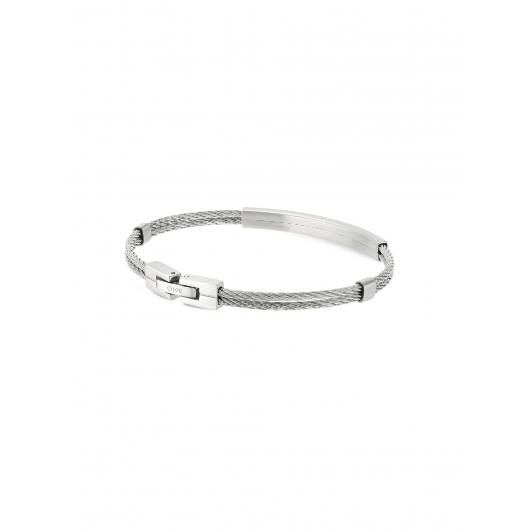 A pulseira One Men Endurance Silver em aço inoxidável apresenta um design contemporâneo e elegante. O corpo da pulseira é composto por um cabo de aço torcido, conferindo um visual robusto e masculino. No centro, uma barra lisa que adiciona um elemento de destaque sutil. O fecho é seguro e fácil de usar, garantindo que a pulseira fique firmemente no pulso. Este acessório é perfeito para quem procura um estilo moderno e versátil, adequado para diversas ocasiões.
