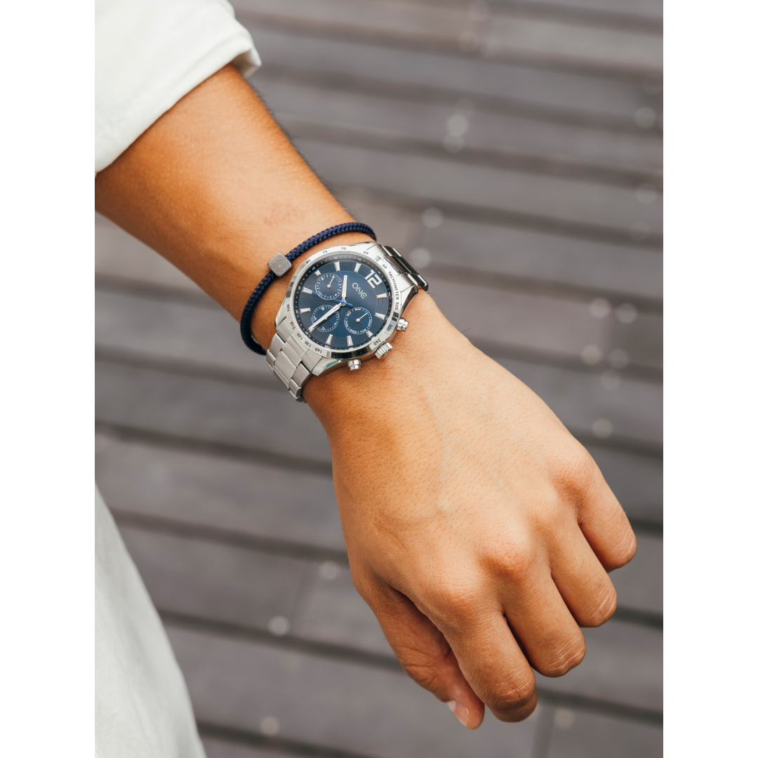 A pulseira Core da coleção One Men representa a fusão entre simplicidade e identidade. Composta por uma corda azul de textura entrelaçada, esta peça destaca-se pela sua resistência e estilo discreto. Ao centro, um pendente cilíndrico prateado em aço inoxidável, gravado com o logótipo da marca, reforça o carácter minimalista e contemporâneo do design. Versátil e fácil de usar no dia a dia, a pulseira Core é um essencial masculino que valoriza os detalhes com discrição e autenticidade. Ideal para quem procura um acessório leve, duradouro e com personalidade.