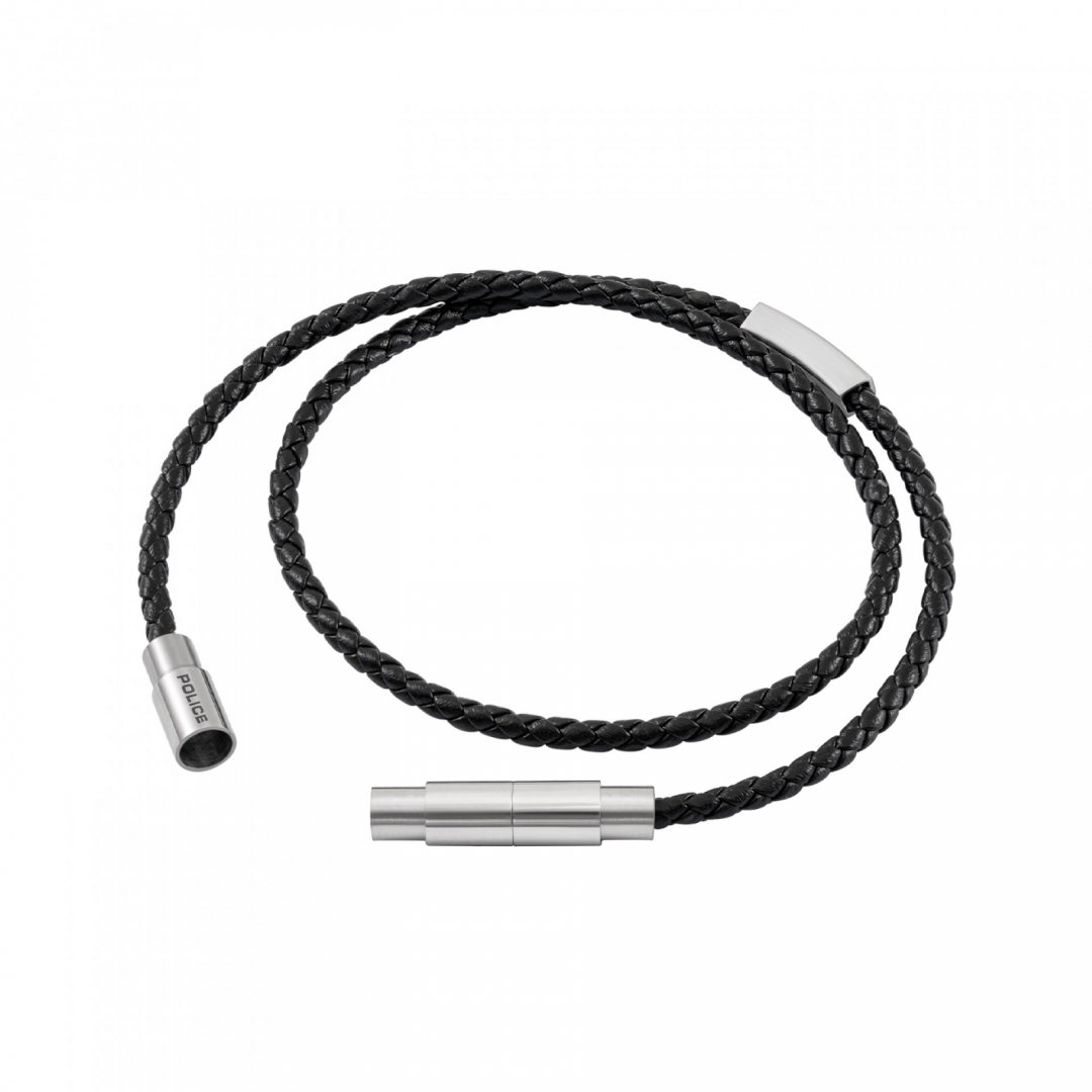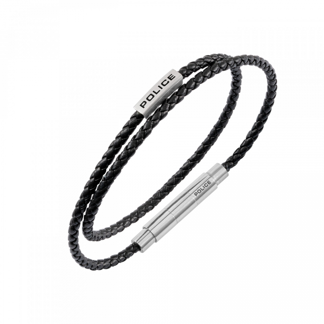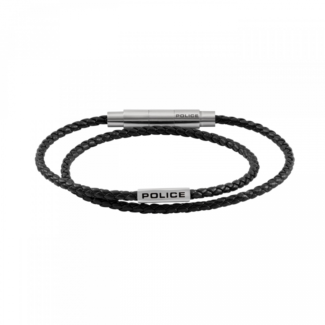 O Duplex explora texturas e versatilidade, sendo uma pulseira de couro preto de dupla volta, fechada com fecho magnético. Exibe a assinatura POLICE no centro, ideal para o desbravador moderno.