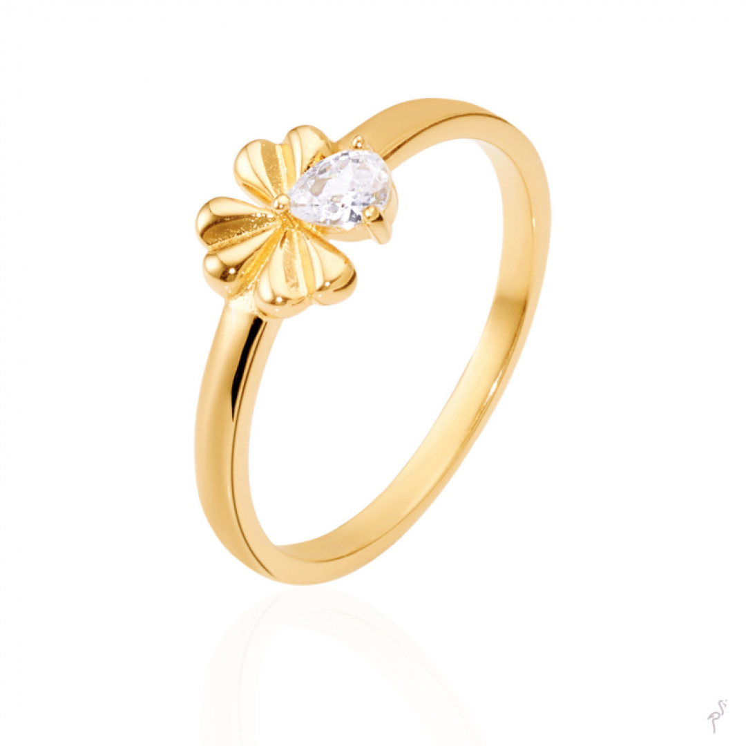 Anel LINK trevo, em prata dourada de lei 925‰. Perfeito para uma mulher moderna e diversificada, beneficiando e realçando o seu estilo e personalidade. A LINK é uma marca de joias jovem e irreverente para mulheres que gostam de brilhar.