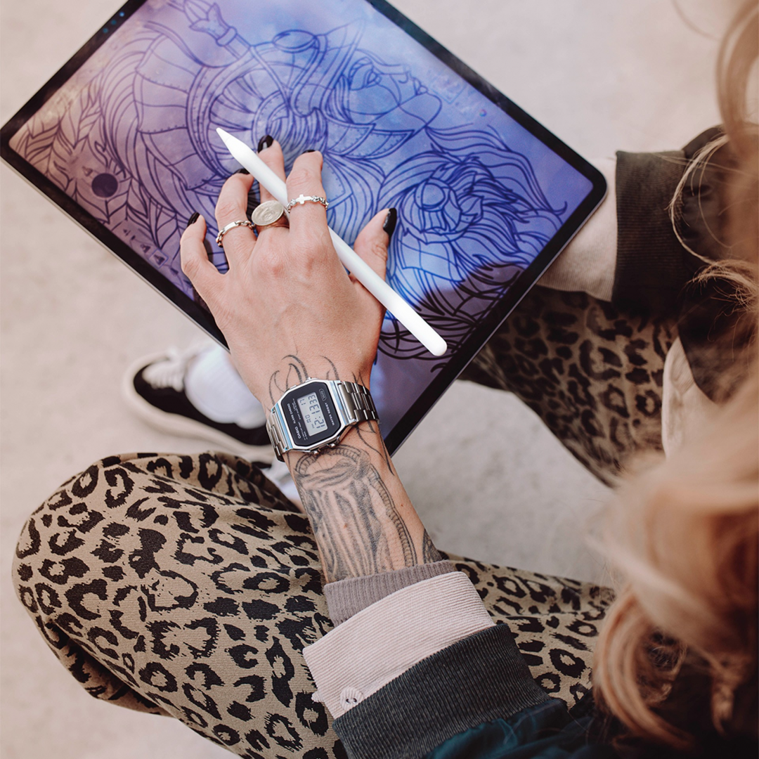 Robusta, resistente e elegante: a correia de pulso em aço inoxidável dá ao seu relógio um visual clássico.