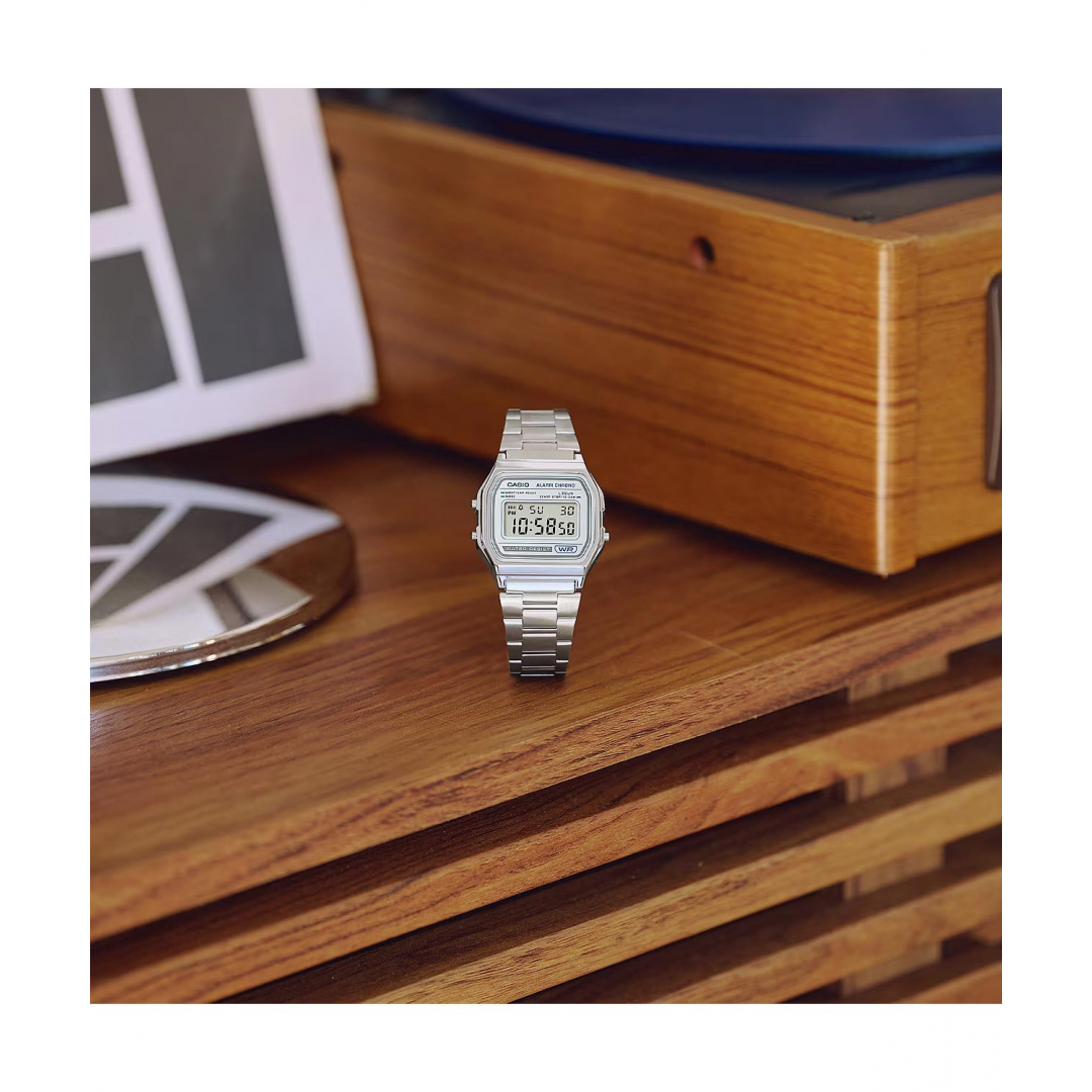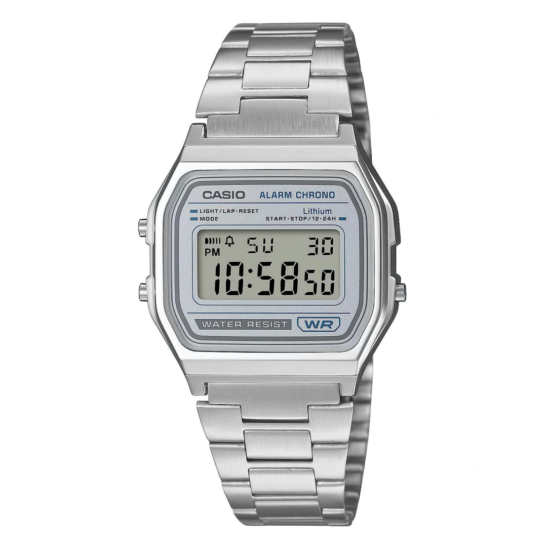 Descubra o charme intemporal do Casio Iconic A158WEA-7EF, um relógio unissexo que combina o espírito vintage da Casio com um estilo moderno e versátil. Inspirado nos designs icónicos que marcaram gerações, este modelo destaca-se pela caixa octogonal em resina com acabamento cinzento e preto, evocando o look retro que nunca sai de moda. O mostrador digital, com detalhes em azul e cinzento, reforça a estética clássica da marca, enquanto a bracelete em aço inoxidável oferece resistência, conforto e um ajuste fácil graças ao fecho deslizante. Leve (45 g) e funcional, inclui cronómetro, alarme diário, calendário automático, formato de 12 horas, luz LED e resistência a pequenos salpicos, perfeito para o dia a dia. Equipado com movimento de quartzo Casio® e bateria com duração aproximada de 7 anos. Este modelo de relógio Casio A158WEA-7EF tanto para de uso masculino ou feminino é uma escolha fiável para qualquer ocasião. Um presente ideal para quem aprecia design icónico, simplicidade e autenticidade.