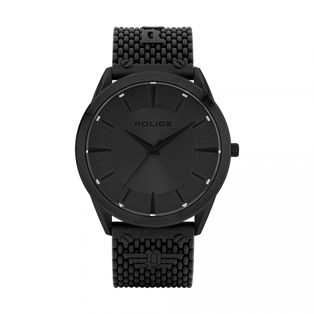 Relógio Police Patriot P15967JSB02AP. Este relógio Police tem uma caixa com diâmetro aproximado de 44 mm, cor preta e bracelete cor preta. Está equipado com um movimento quartzo. O relógio é estanque até 50 m | 5 bar | 5 atm. Composição: aço, silicone.