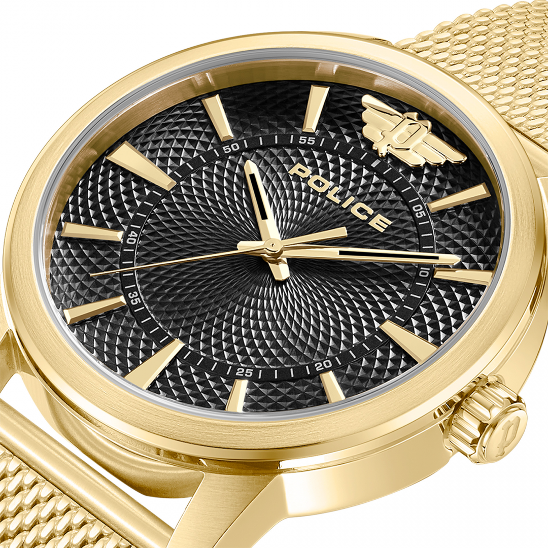 Relógio POLICE Raho, elegante e sofisticado este modelo possui bracelete e caixa em aço inoxidável dourado e mostrador preto. Vais querer levar contigo para todo o lado.