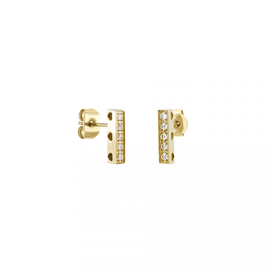 Os brincos One Reflexions Gold são brincos com uma forma retangular dourados com cristais zircónias com corações perfurados na lateral. A coleção reflexions é composta por peças de joalharia contemporâneas que trazem elegância e sofisticação ao visual. Estes brincos apresentam um design delicado, simbolizando o amor e o afeto sendo uma escolha versátil. Com a sua qualidade excepcional e design elegante, esta coleção promete encantar os amantes de joias mais exigentes.