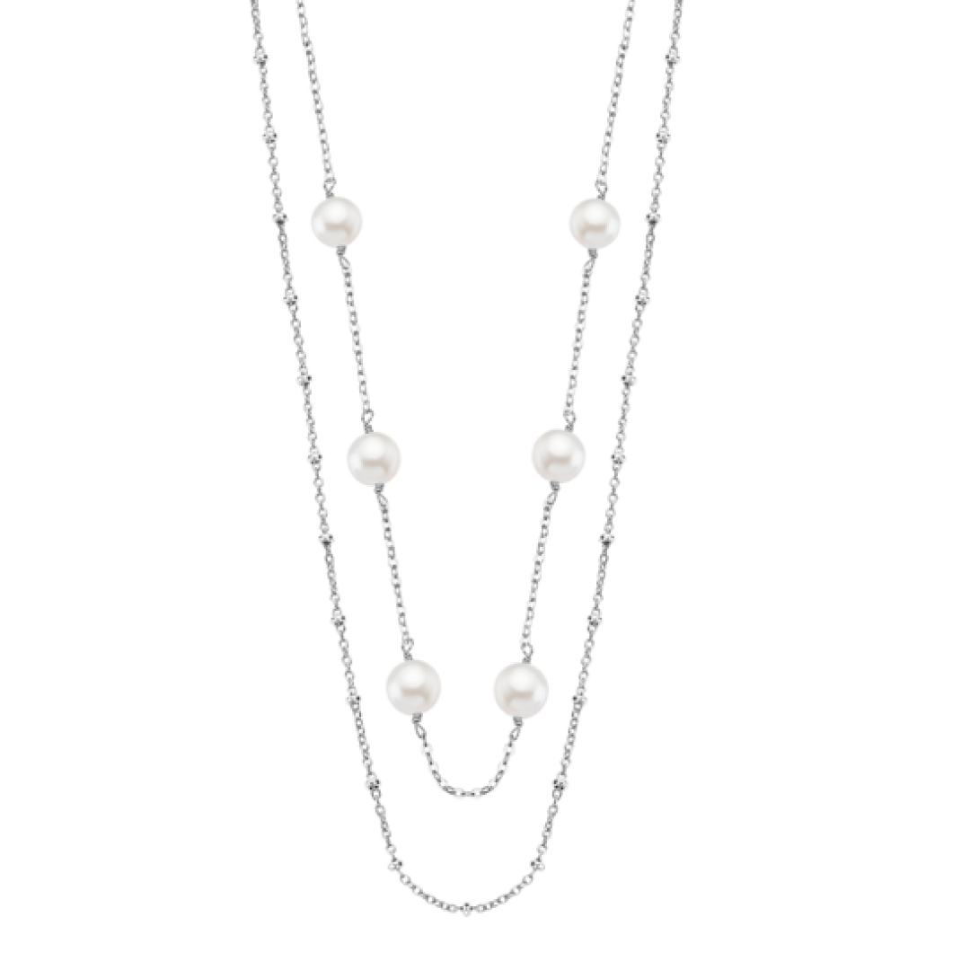 COLAR PRATA LOTUS 2 FIOS C/PÉROLAS