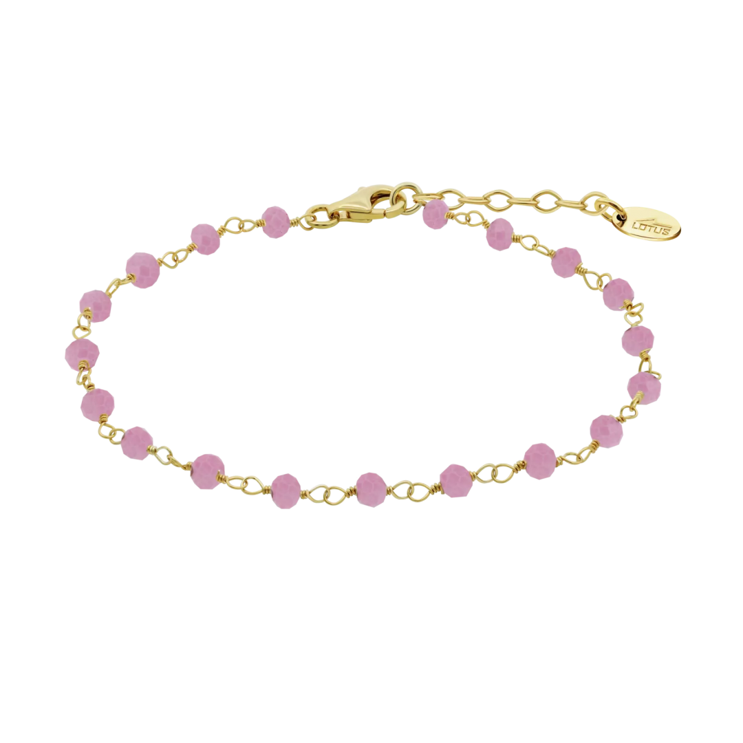 PULSEIRA LOTUS PRATA DOURADA COM PEDRAS ROSA