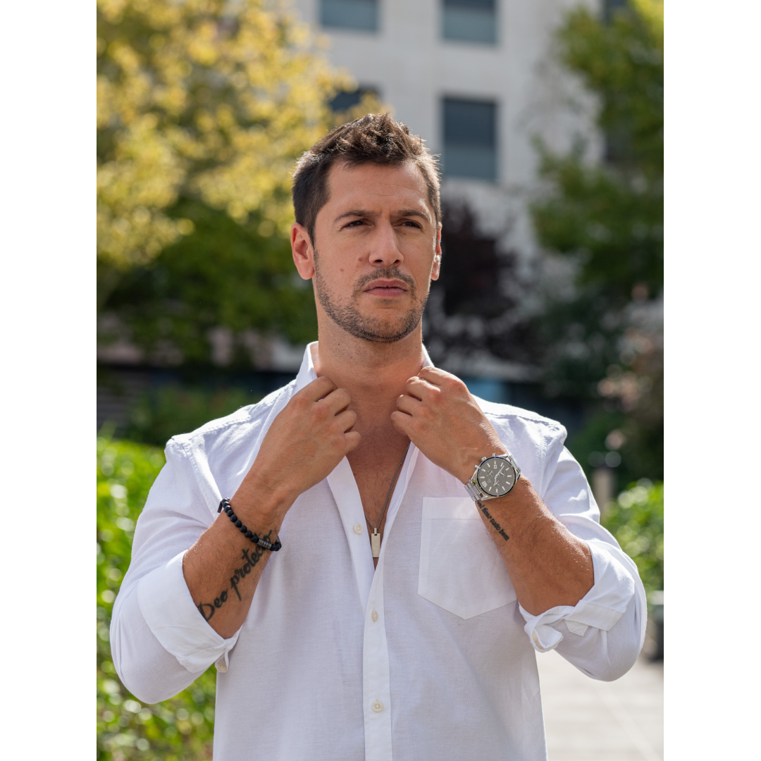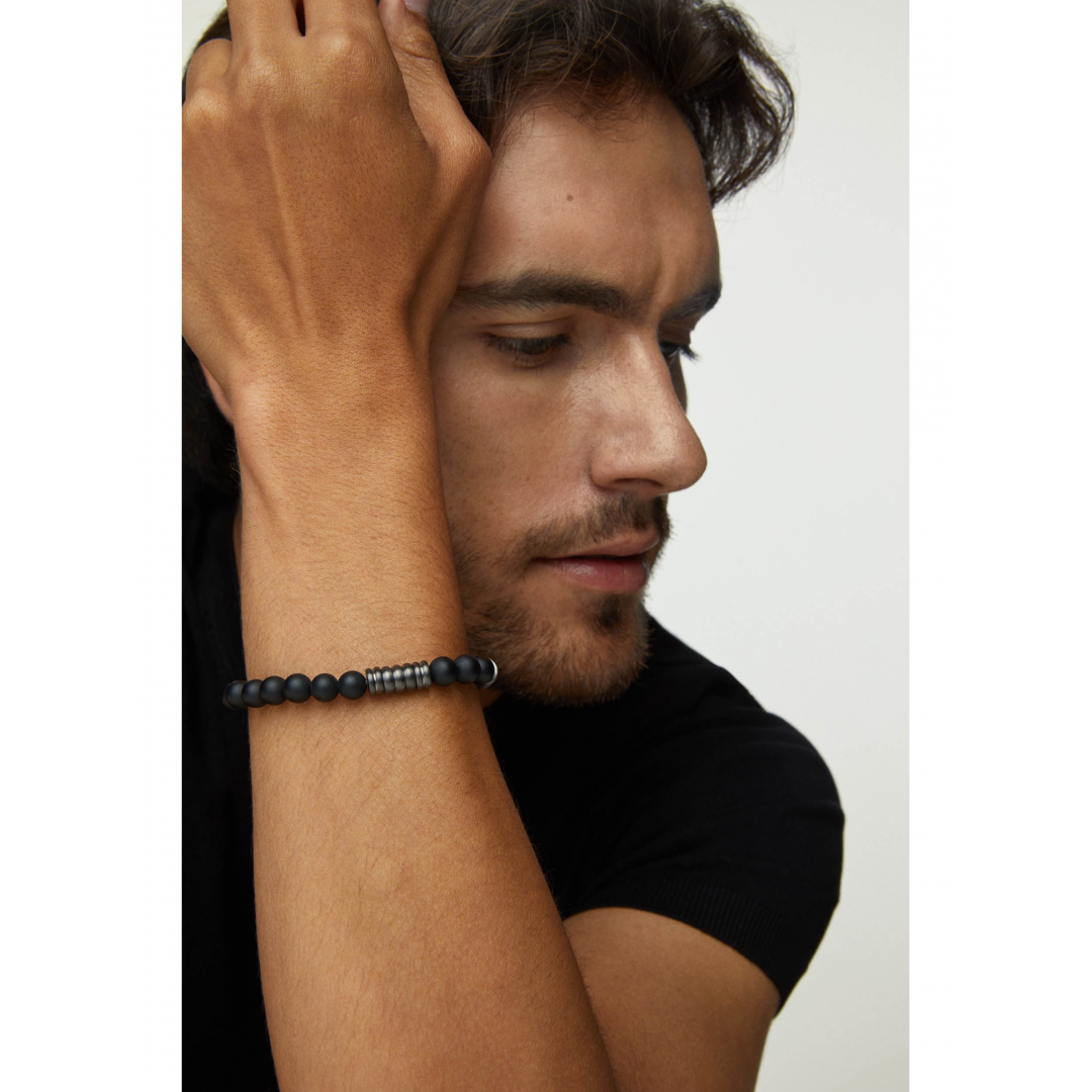 A pulseira One Men Woods é composta por pedras naturais ágata preta intercaladas por dois separadores prateado escuro. Um acessório distinto que combina o brilho do aço prateado com a beleza das pedras preciosas. O principal destaque desta pulseira são as pedras naturais ágata preta, com uma cor escura e intensa, conferindo à pulseira um visual sofisticado e elegante. Pode ser usada em diversas ocasiões, desde eventos casuais até situações mais formais, adicionando um toque de elegância e personalidade ao visual masculino.
