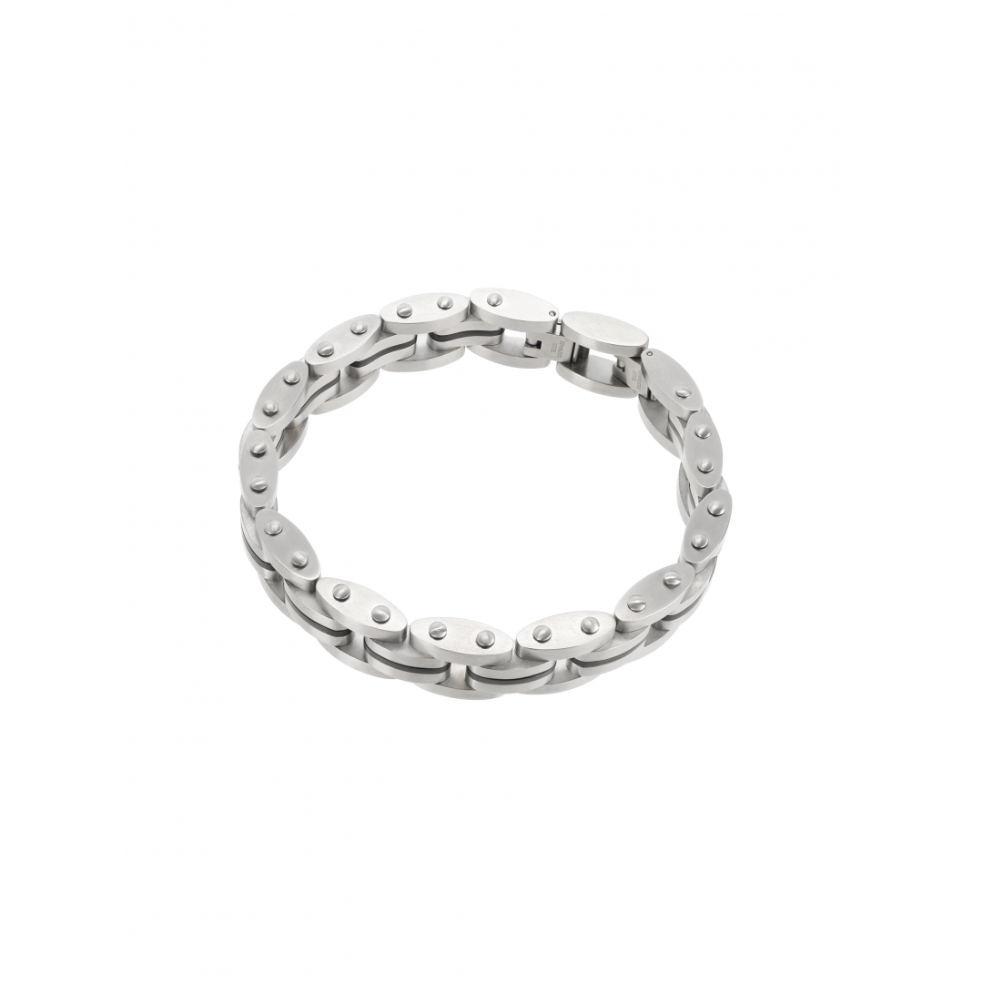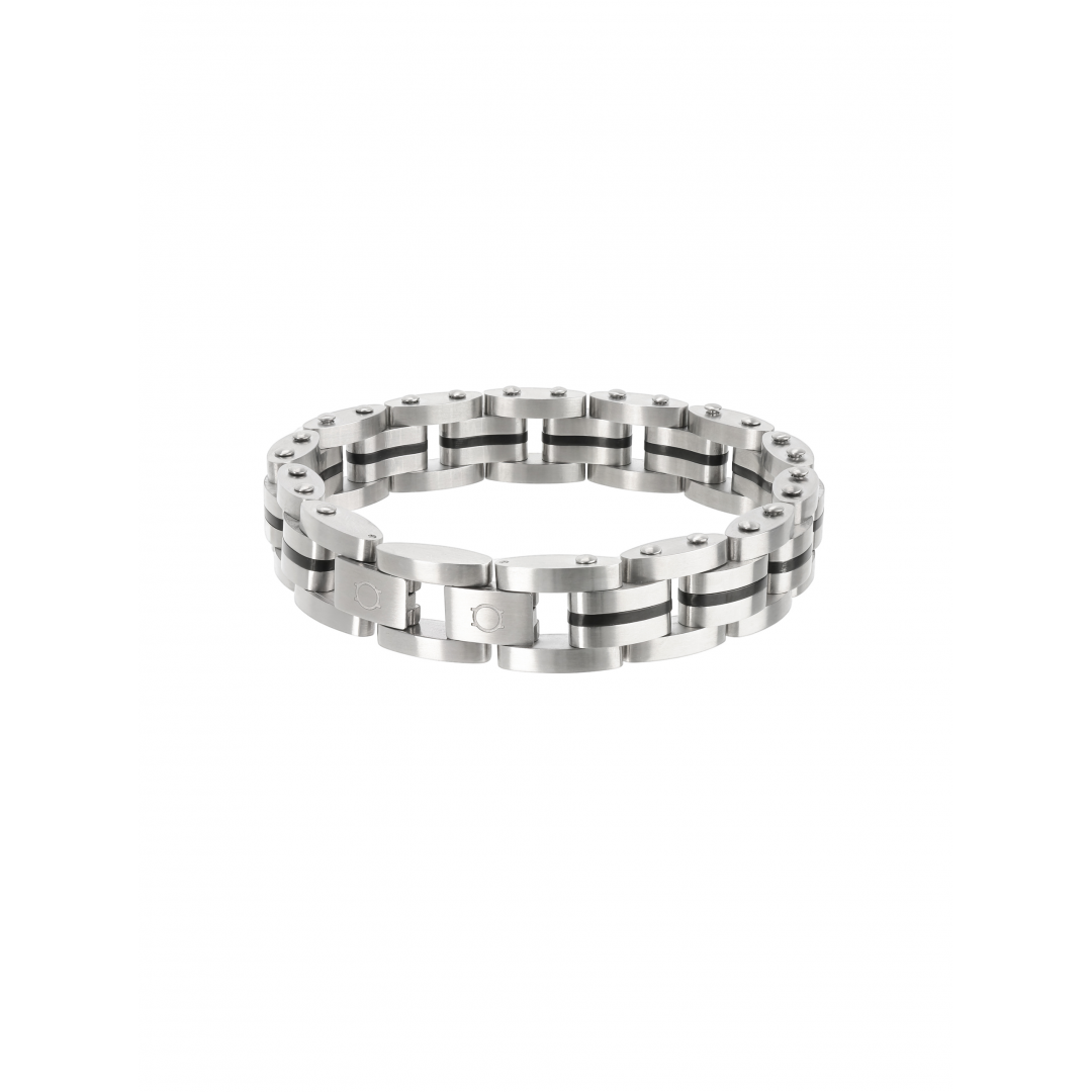 A pulseira One Men Adrenaline é composta por peças alongadas prateadas com uma risca preta central ligadas entre si assemelhando-se a uma bracelete de relógio. De aspecto rígido e robusto a pulseira pode ser facilmente ajustada retirando um dos elos junto ao fecho ficando um tamanho mais pequena. Um acessório de homem de linhas assumidamente masculinas com inspiração em elementos desportivos como partes de carros