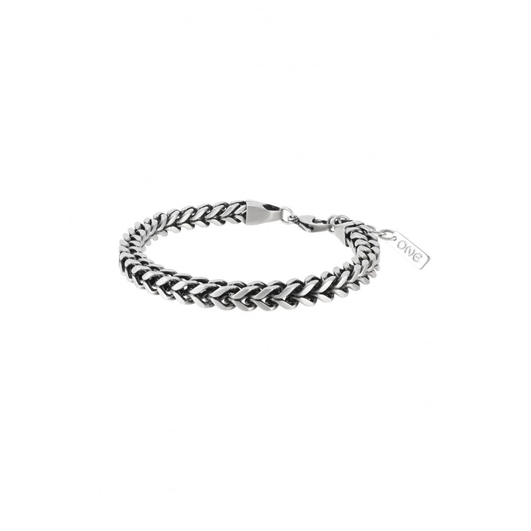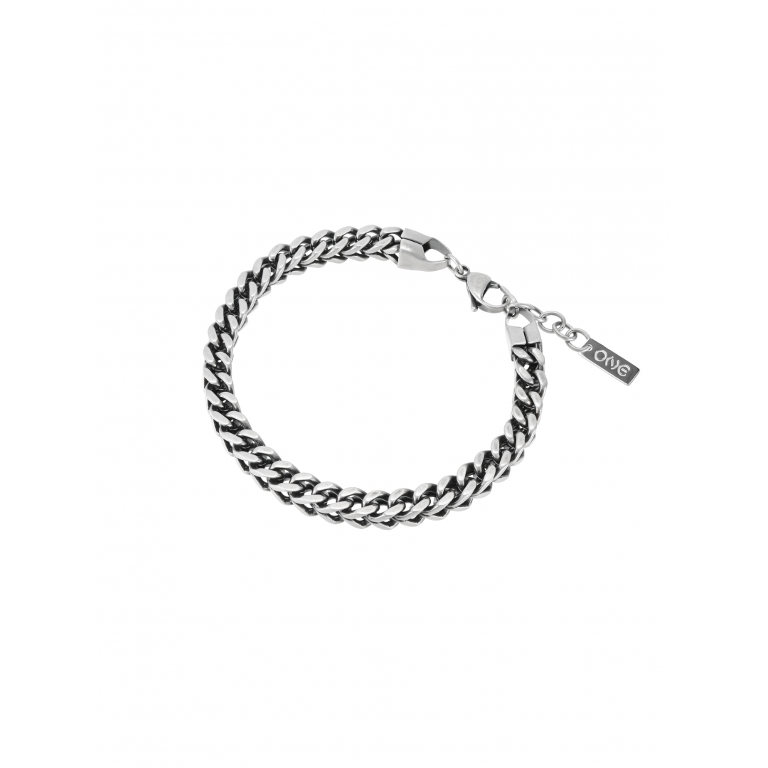 A pulseira One Men Captain em prateado escuro com uma malha veneziana e fecho de mosquetão é um acessório robusto com um toque naútico, idealizado para quem que procure um acessório mais marcante. A malha veneziana é caracterizada por ter elos quadrados entrelaçados que criam uma aparência robusta e tornam esta pulseira um acessório versátil, para o dia-a-dia como para ocasíões mais formais.