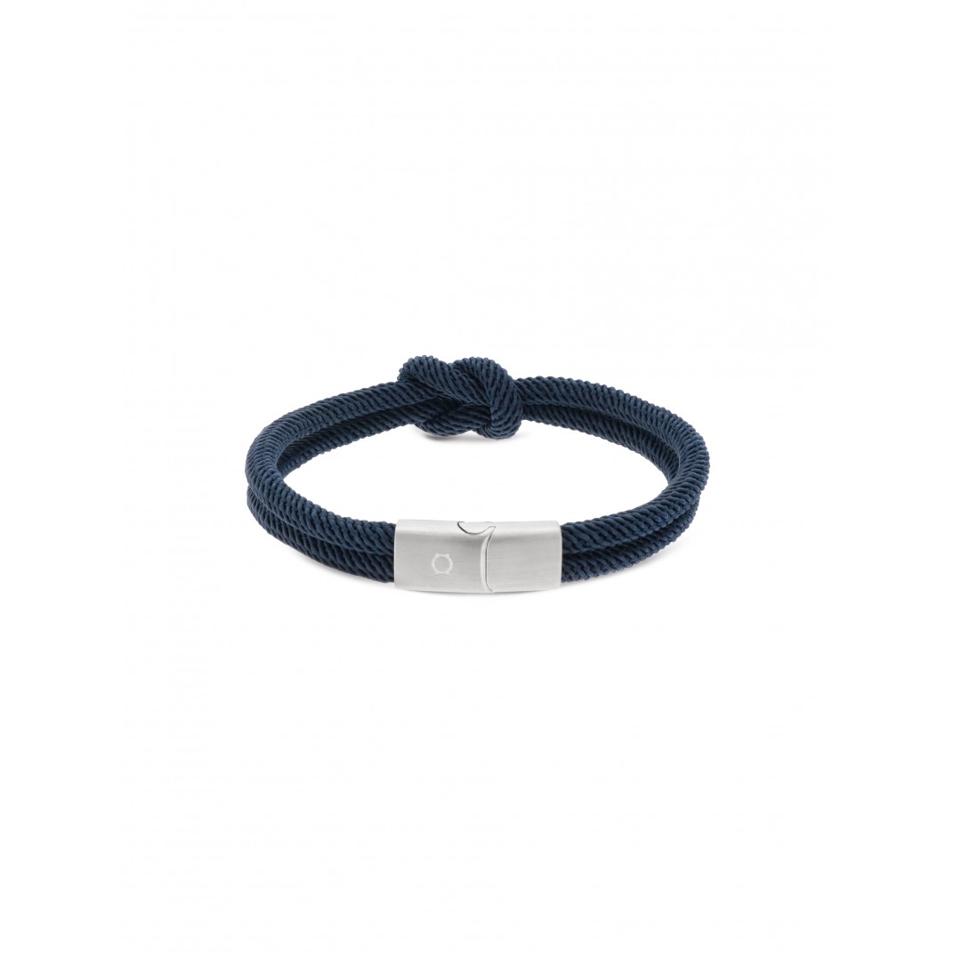 A pulseira Canyon azul da coleção One Men é inspirada pelo principal elemento naútico: os nós. É composta por duas tiras de corda azuis entrelaçadas com um nó de marinheiro na parte superior da pulseira e termina com um fecho de encaixe magnético em prateado. Um acessório com um estilo mais descontraído e aventureiro, ideal para combinar com looks mais casuais ou desportivos.