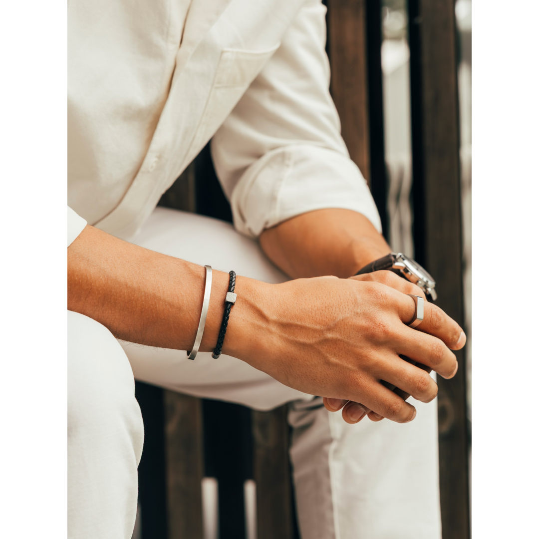 A pulseira Core da coleção One Men representa a fusão entre simplicidade e identidade. Composta por uma corda de pele preta de textura entrelaçada, esta peça destaca-se pela sua resistência e estilo discreto. Ao centro, um pendente cilíndrico prateado em aço inoxidável, gravado com o logótipo da marca, reforça o carácter minimalista e contemporâneo do design. Versátil e fácil de usar no dia a dia, a pulseira Core é um essencial masculino que valoriza os detalhes com discrição e autenticidade. Ideal para quem procura um acessório leve, duradouro e com personalidade.