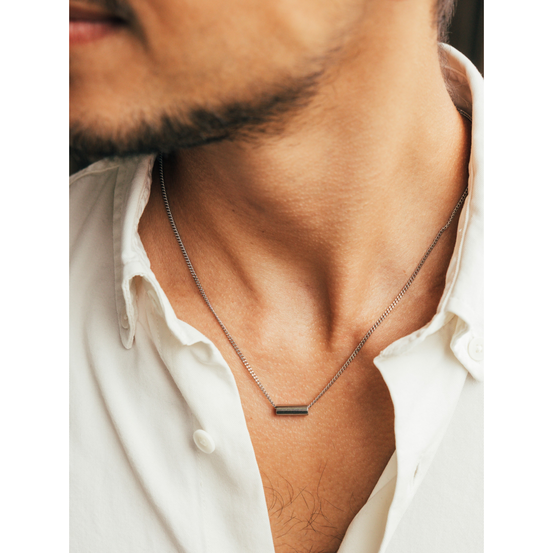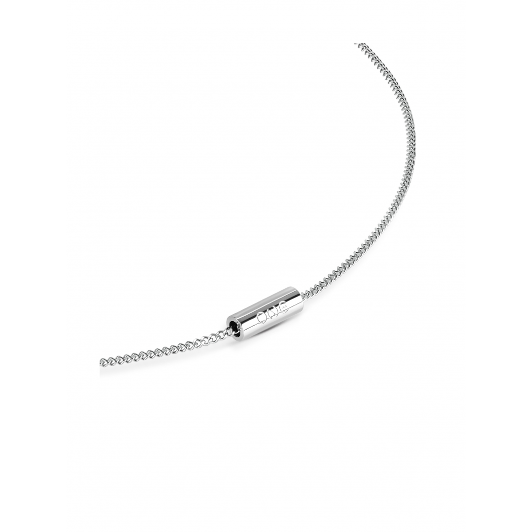 O colar Axis, da coleção One Men, apresenta um design minimalista e versátil pensado para o homem contemporâneo. Com uma malha de elos fina em aço inoxidável prateado, este fio distingue-se pelo pendente cilíndrico também prateado e de acabamento polido, gravado com a inscrição One. Um detalhe sóbrio, mas cheio de personalidade, que reforça o caráter urbano e intencional da peça. Ideal para uso diário, o Axis adapta-se facilmente a diferentes estilos e ocasiões, afirmando-se como um essencial moderno no universo masculino.