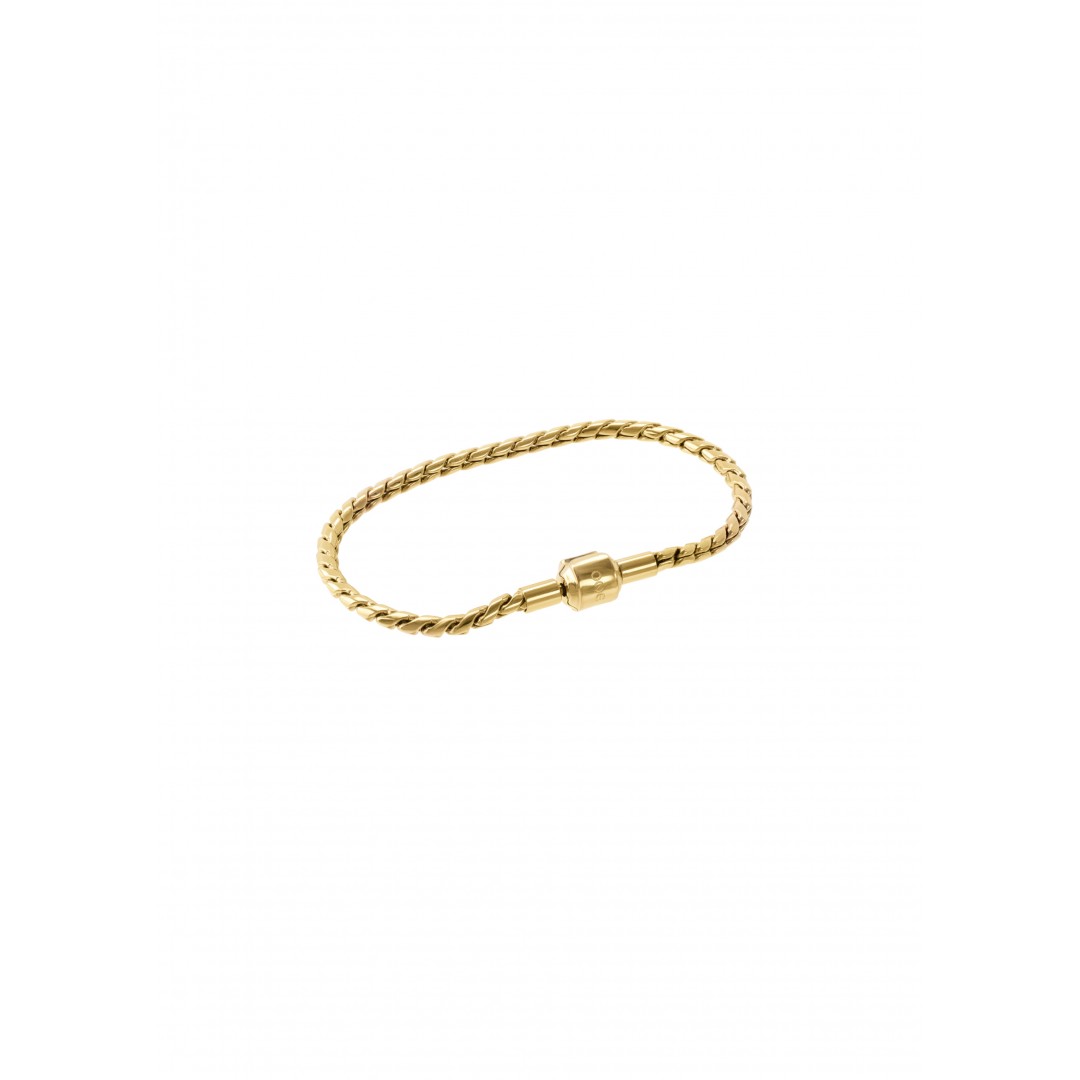 A pulseira master Energy Twisted totalmente dourada é composta por uma malha mais larga, em corda, que termina com um íman de segurança e um fecho de trinco. A partir de uma das extremidades é possível colocar charmes, charmes bond e charmes story começando assim a criar a tua história Energy for Life. Uma memória, um momento inesquecível eternizado ao pulso.
