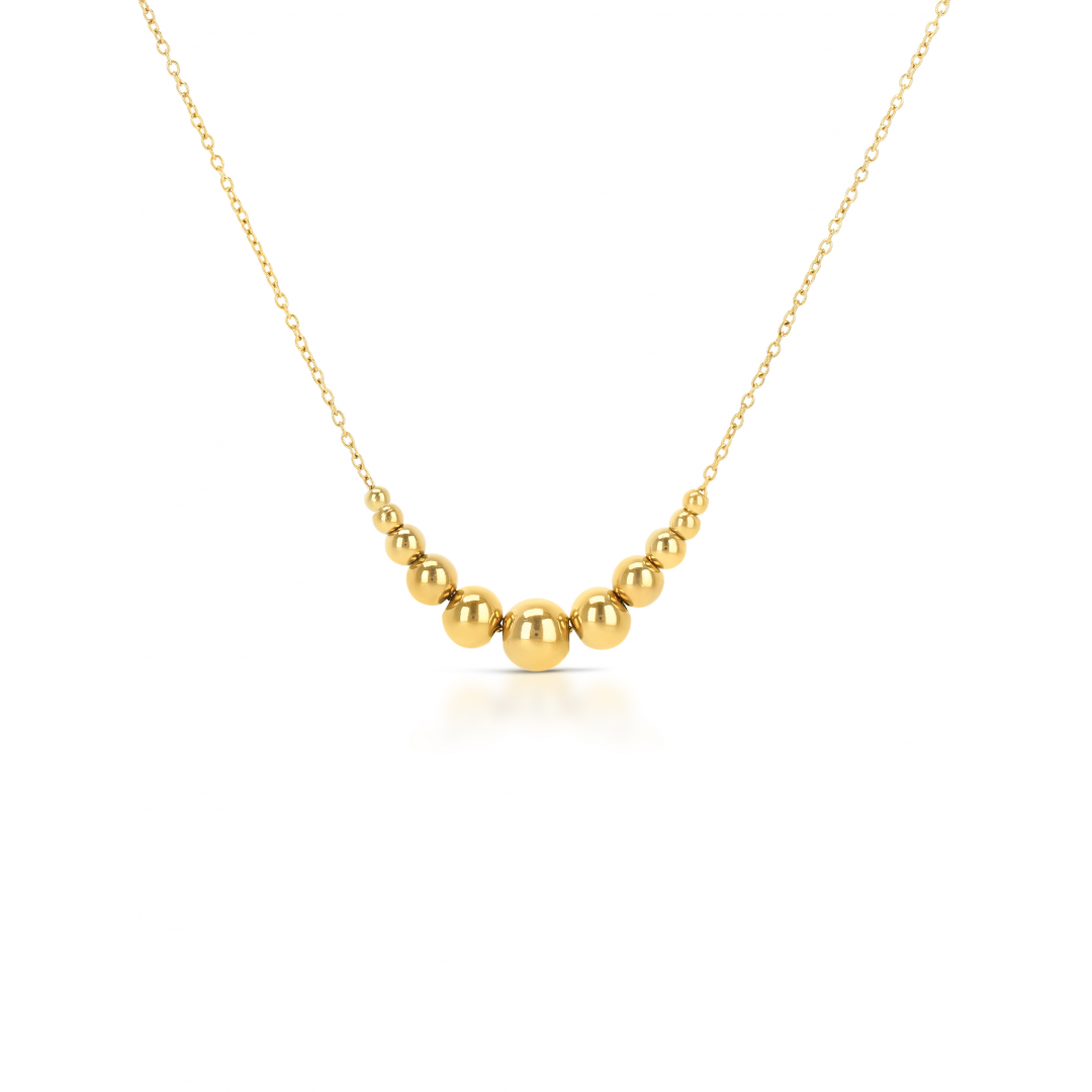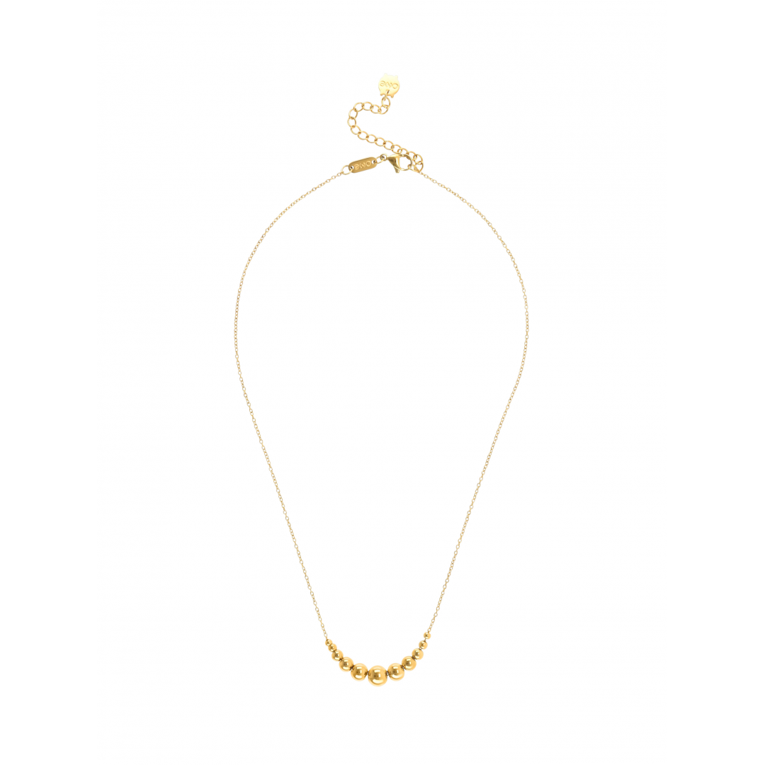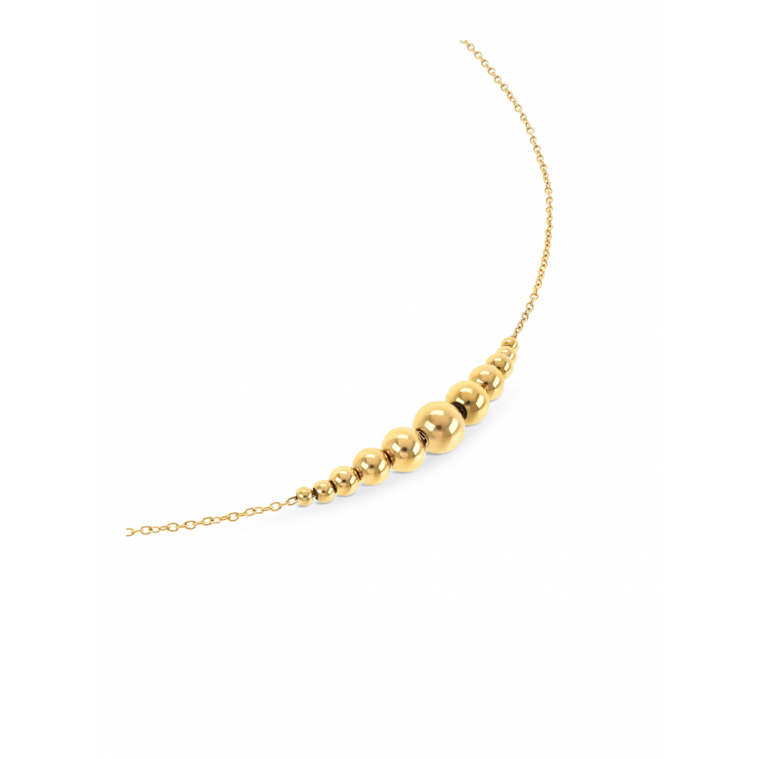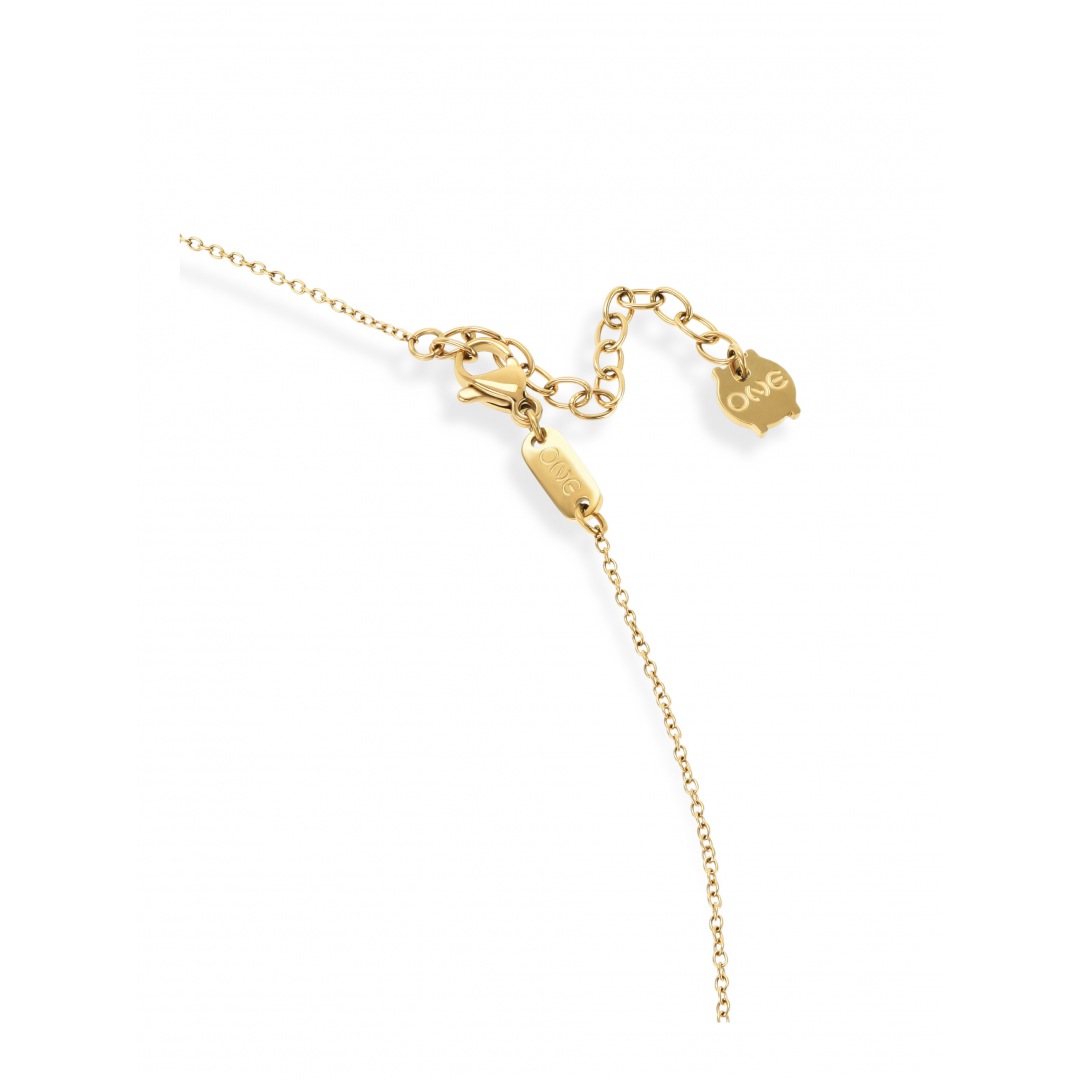 O colar Fine da coleção Infinity em dourado coloca o elemento clássico de joalharia, as esferas douradas (contas) em principal destaque. Um colar constituído por uma malha de elos dourada muito fina ,culminando na parte central do colar onde estão fixas onze luminosas esferas douradas com um gradiente de tamanho das pontas do fio até a esfera central, a maior. O colar termina com um fecho em mosquetão e uma série de elos para torná-lo mais versátil a diversos comprimentos. A coleção Infinity presta homenagem ao símbolo do infinito e à força motora da ONE que é o tempo.