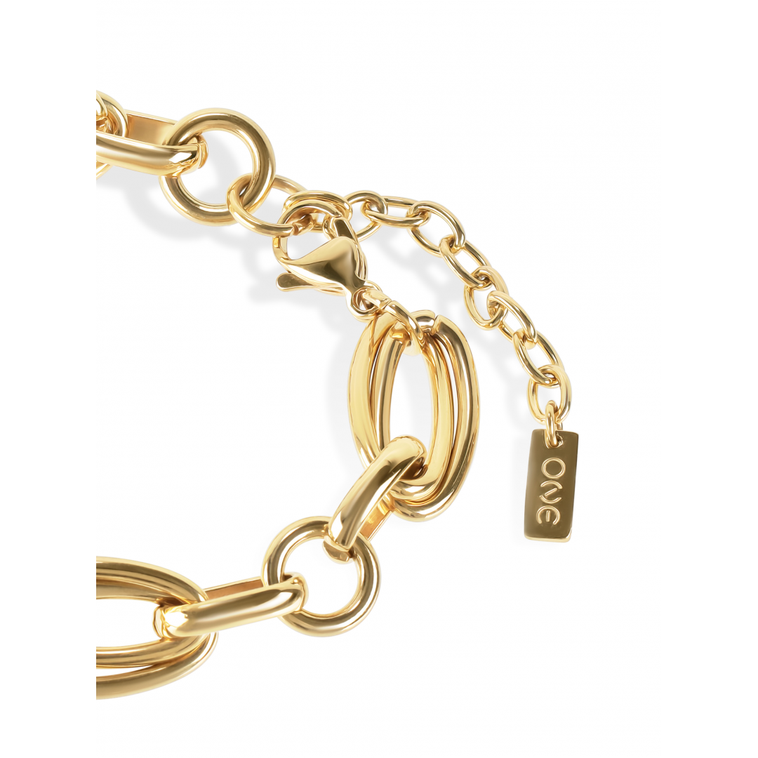 A pulseira Solid da coleção Luminous é uma peça mais robusta no pulso. Uma pulseira de elos que segue a mesma cadência que o colar Solid da coleção, um elo duplo mais alongado seguido de um mais fino e alongado, um totalmente redondo e outro fino e alongado. Totalmente dourada, a pulseira Solid termina com um extensor e fecho de lagosta o que a torna ajustável a várias larguras de pulso. Para fãs de looks matchy match, o colar Solid da coleção Luminous é o par perfeito para a pulseira.