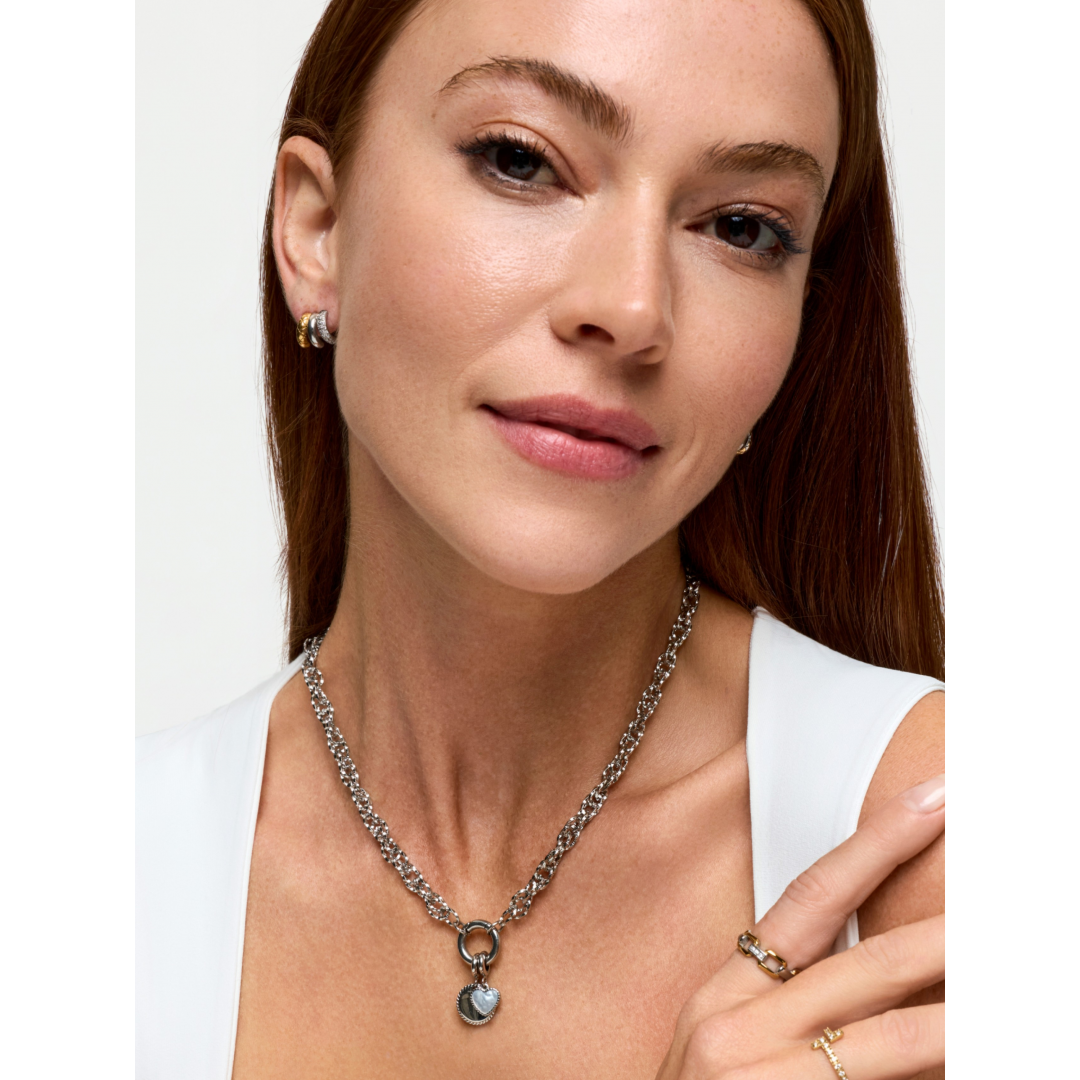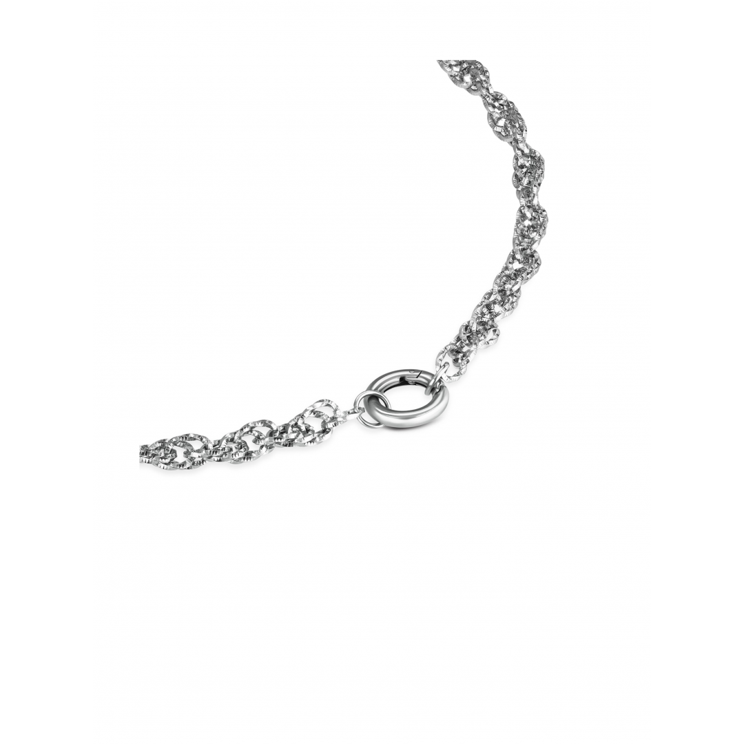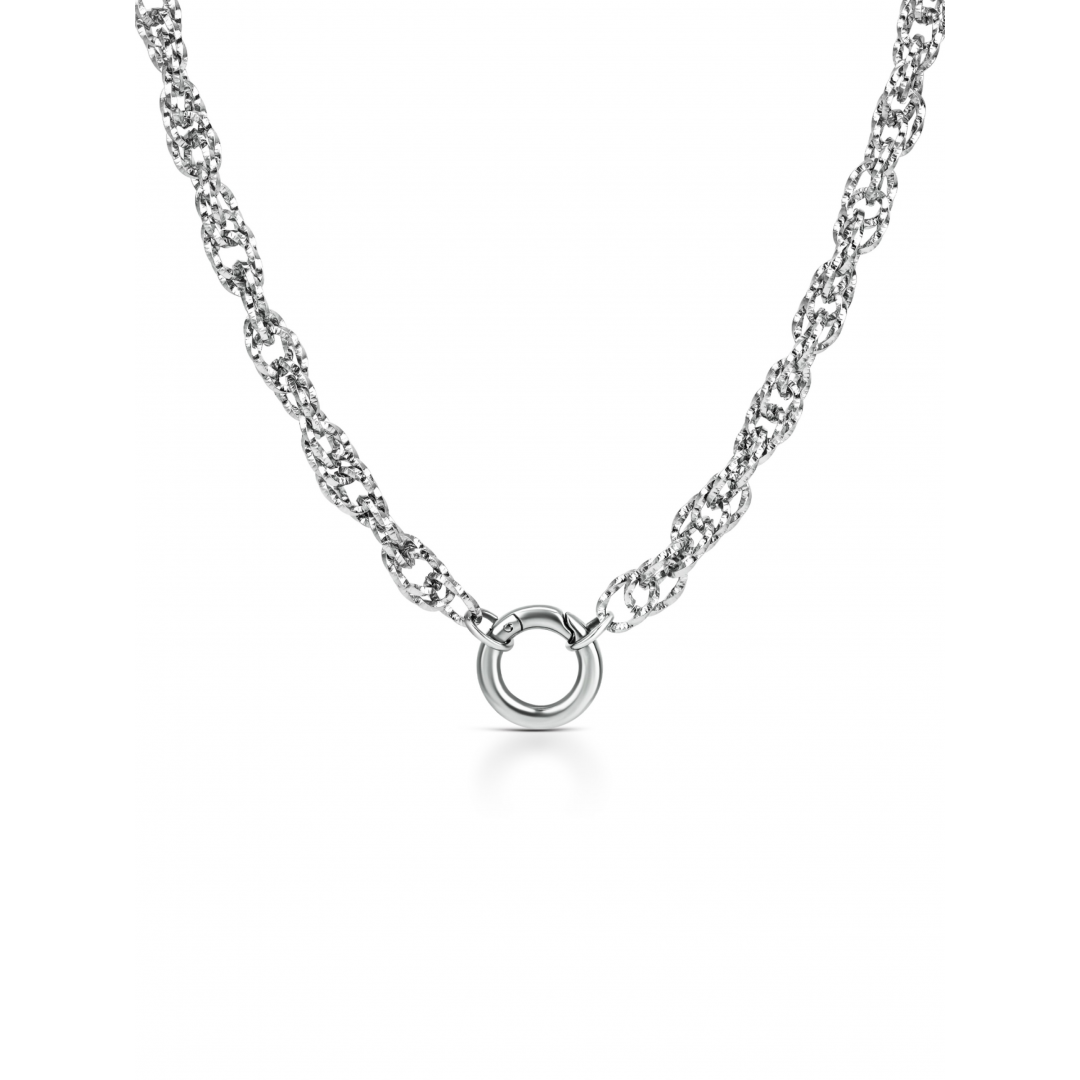 O Colar Energy Master Union Double é composto por um fio prateado de malha dupla e torcida, que confere textura, fluidez e um visual contemporâneo à peça. O design robusto, mas equilibrado, torna este colar uma base marcante e versátil dentro da coleção Energy for Life. No centro, destaca-se um aro redondo prateado, que funciona como elemento de fecho e ponto focal do colar. Ao contrário de outros colares master Energy, neste modelo Union Double os charmes são aplicados diretamente no aro central, e não ao longo do fio, reforçando o seu carácter funcional e simbólico. Este colar é compatível exclusivamente com charmes pendentes da coleção Energy for Life (não compatível com charmes bond ou stories), permitindo personalizar a peça de forma simples e significativa. Cada charme acrescentado representa uma memória, um momento especial ou uma ligação única, eternizada junto ao peito. Com fecho ajustável para maior conforto e adaptação, o Energy Master Union Double pode ser usado sozinho como peça de destaque ou integrado em composições de layering. Uma peça com identidade forte, pensada para contar histórias e acompanhar diferentes fases e emoções da vida.