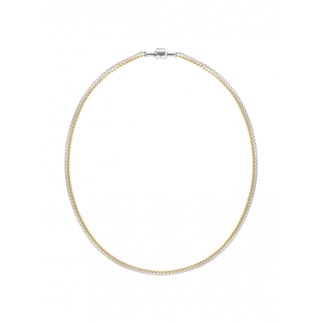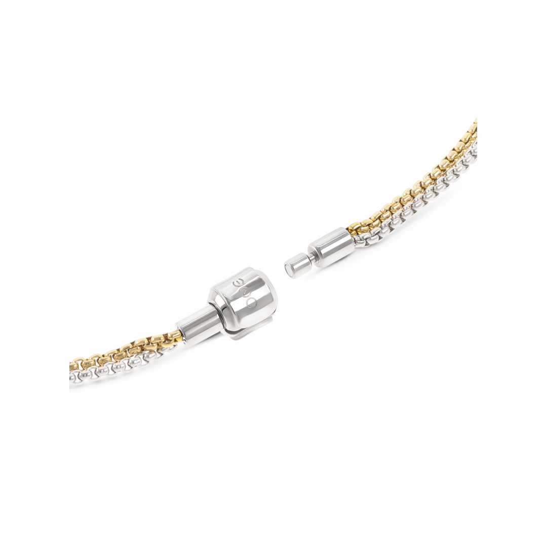 O colar master em dourado e prateado da coleção Energy for Life traz a tendência do mix & match para os masters da coleção. Um master com fio duplo, um prateado e outro dourado, que terminam num fecho em click e por onde os charmes e bonds entram. Começa aqui a tua história Energy For Life, uma memória, um momento inesquecível eternizado ao pescoço. Compatível com todos os charmes e bonds da coleção.