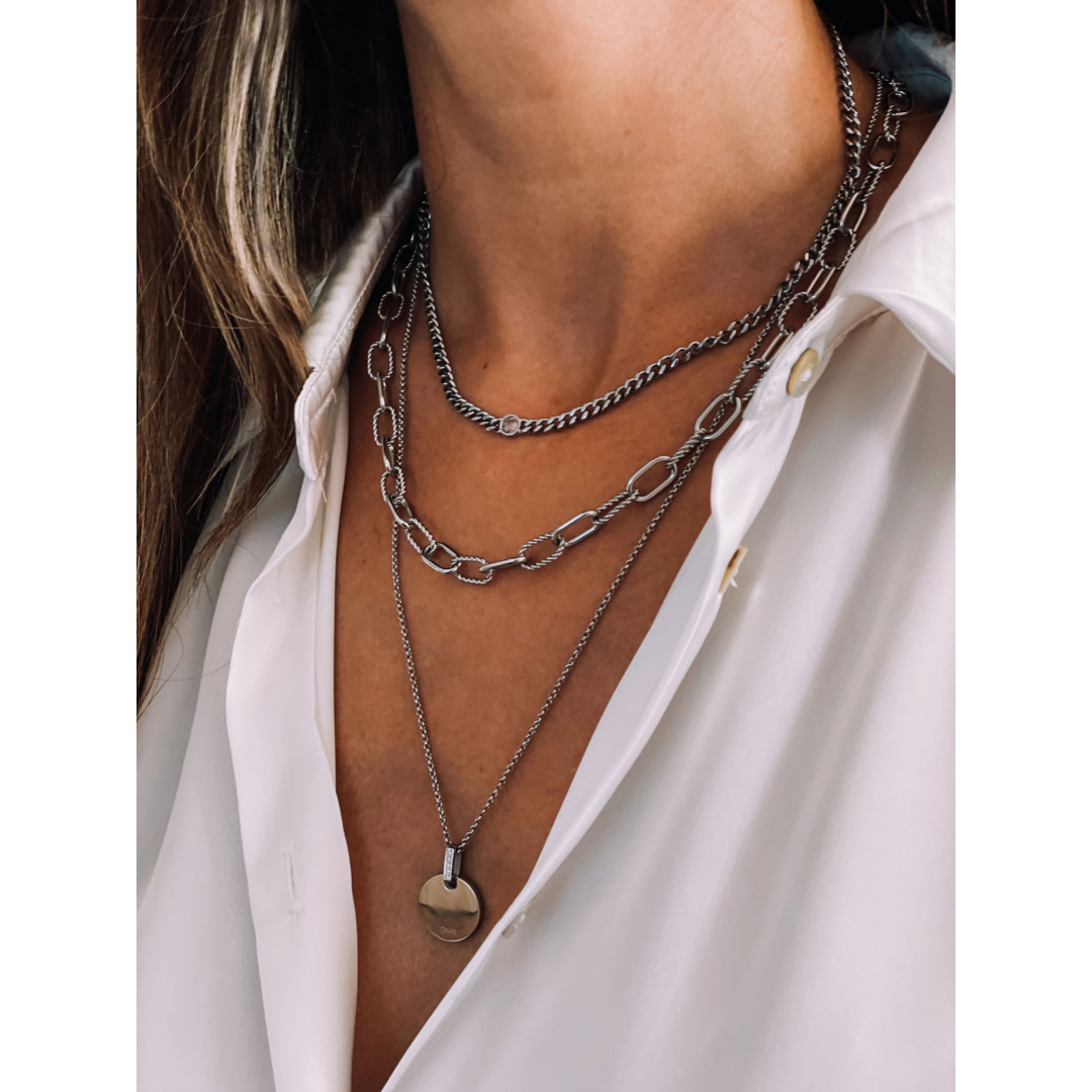 Inspirada nas grandes tendências atuais, a coleção Neckmess é uma verdadeira trend alert. Com um conjunto de 13 colares multi-linhas e 3 extensores para aplicar, esta coleção é única para quem gosta de personalizar, sobrepor, misturar ou simplificar, seguindo a tendência de layering. Cada peça é única, produzida em aço, na cor dourada, prateada, em rosegold ou multicor, com apontamentos em cristal zircónias, que marcam a diferença pelo seu design único. It’s a mess, it’s Neckmess - uma coleção a pensar nas mulheres e na sua história, que é contada ao pormenor e em cada detalhe que levam ao peito. Rebel, Iconic, Classic, Happy e Free, são alguns dos nomes que dão vida a esta nova coleção e que transmitem a essência de quem os usa.