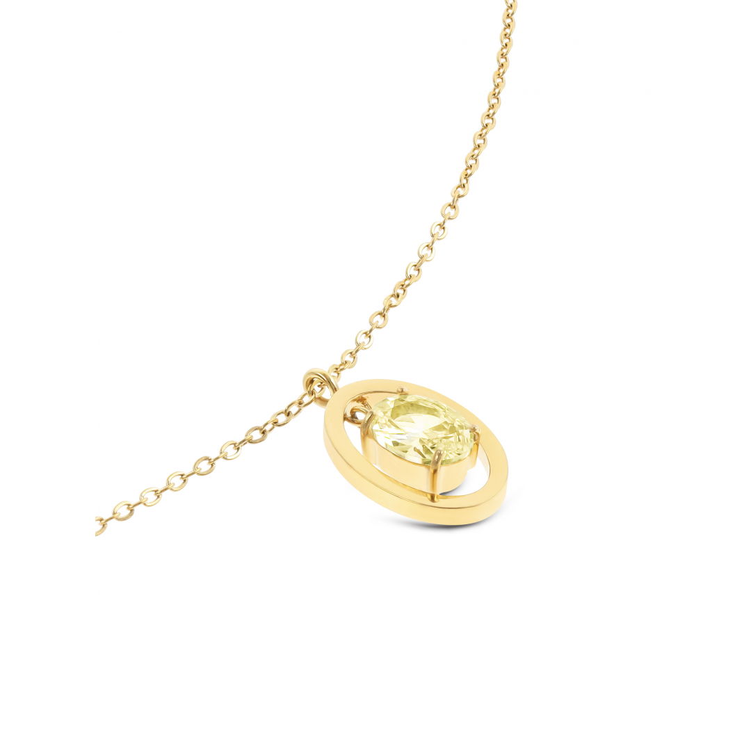 O colar Outubro - Saúde da coleção Birthstones é uma peça delicada e carregada de simbolismo. É composto por uma malha de elos dourada muito fina e discreta e por um pendente oval cujo design dá a ilusão que o cristal zircónia amarela está a flutuar dentro de uma moldura. Esta coleção limitada de colares foi criada para assinalar e celebrar os 20 anos da One, enaltecendo os desejos e intenções que desejamos a todos.