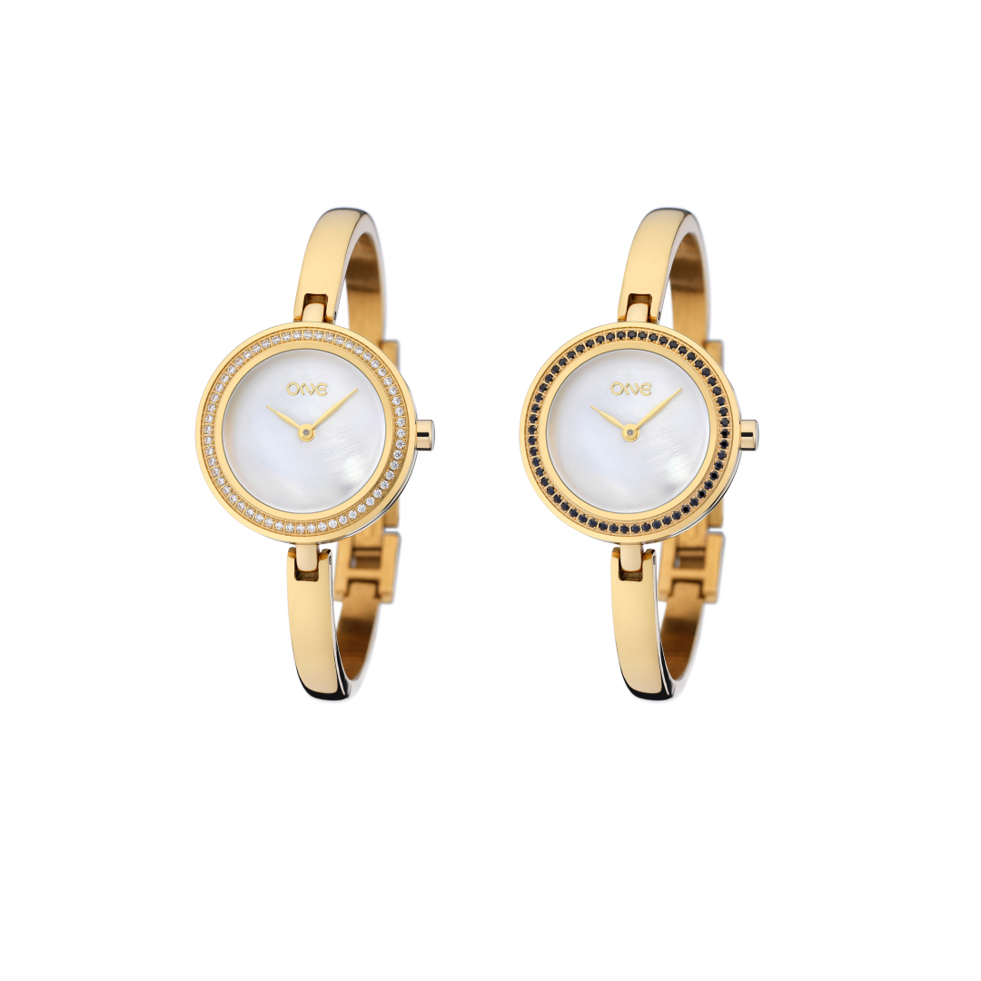 A Box Elegance foi criada em linha com a tendência crescente de caixas e mostradores mais pequenos e para homenagear um modelo clássico da relojoaria feminina. É composta por um relógio dourado, com uma caixa pequena e redonda, mostrador em madrepérola e dois ponteiros em dourado. A bracelete, também em dourado, tem um design minimalista parecendo uma pulseira no pulso. A box conta com seis opções diferentes de aros intercambiáveis que criam um look totalmente diferente ao relógio: em dourado com cristais brancos, em dourado com cristais pretos, totalmente dourado e totalmente prateado, em preto e em verde brilhante. Basta rodar a peça no topo da caixa do relógio para trocar o estilo do relógio para o dia. A Box Elegance é um verdadeiro 6 em 1 onde de um relógio nascem seis looks distintos, versáteis para qualquer que seja a ocasião, mais casual ou mais formal. A prenda perfeita para uma mulher que gosta de inovar os seus looks de forma rápida e fácil.