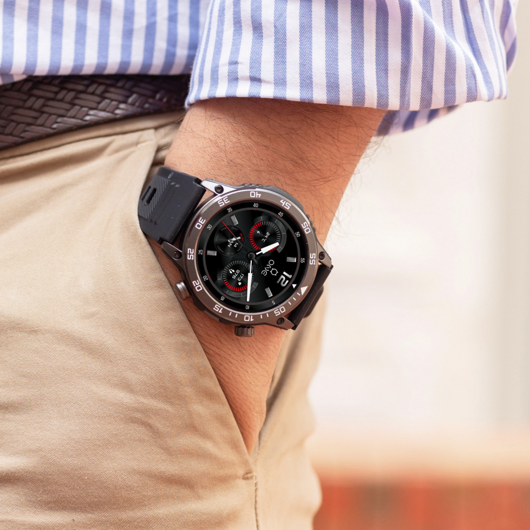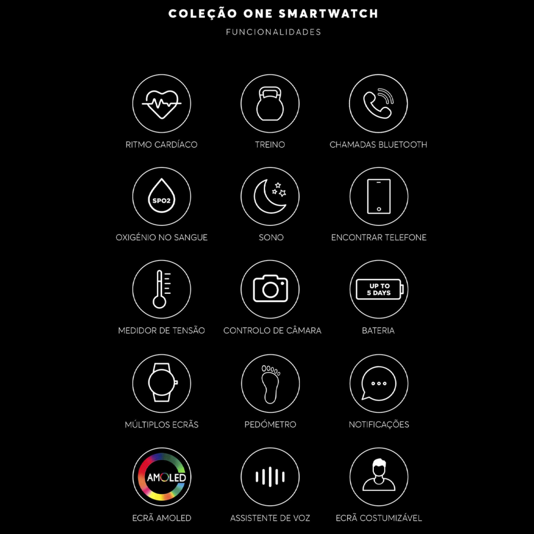 Nunca mais percas uma chamada importante! O smartwatch SportyCall da geração 3 de cor preta com bracelete de silicone preta é um dispositivo tecnológico moderno e versátil, perfeito para acompanhar um estilo de vida ativo. A bracelete de silicone preta reforça o design desportivo deste modelo de smartwatch. O ecrã em AMOLED e o recurso a AI voice para alguns comandos colocam o SportyCall na vanguarda de smartwatches One Men. Além das suas funcionalidades avançadas, este smartwatch é perfeito para atividades físicas e desportivas (water resistant 3ATM) que o pode acompanhar durante os treinos, corridas e outras atividades físicas, oferecendo recursos de monitoramento através da aplicação One Time Pro. A combinação da tecnologia inovadora, design discreto de linhas mais masculinas e bracelete de silicone, faz deste smartwatch a escolha ideal para homens que procuram um dispositivo prático e funcional que se adapta a um estilo de vida activo.