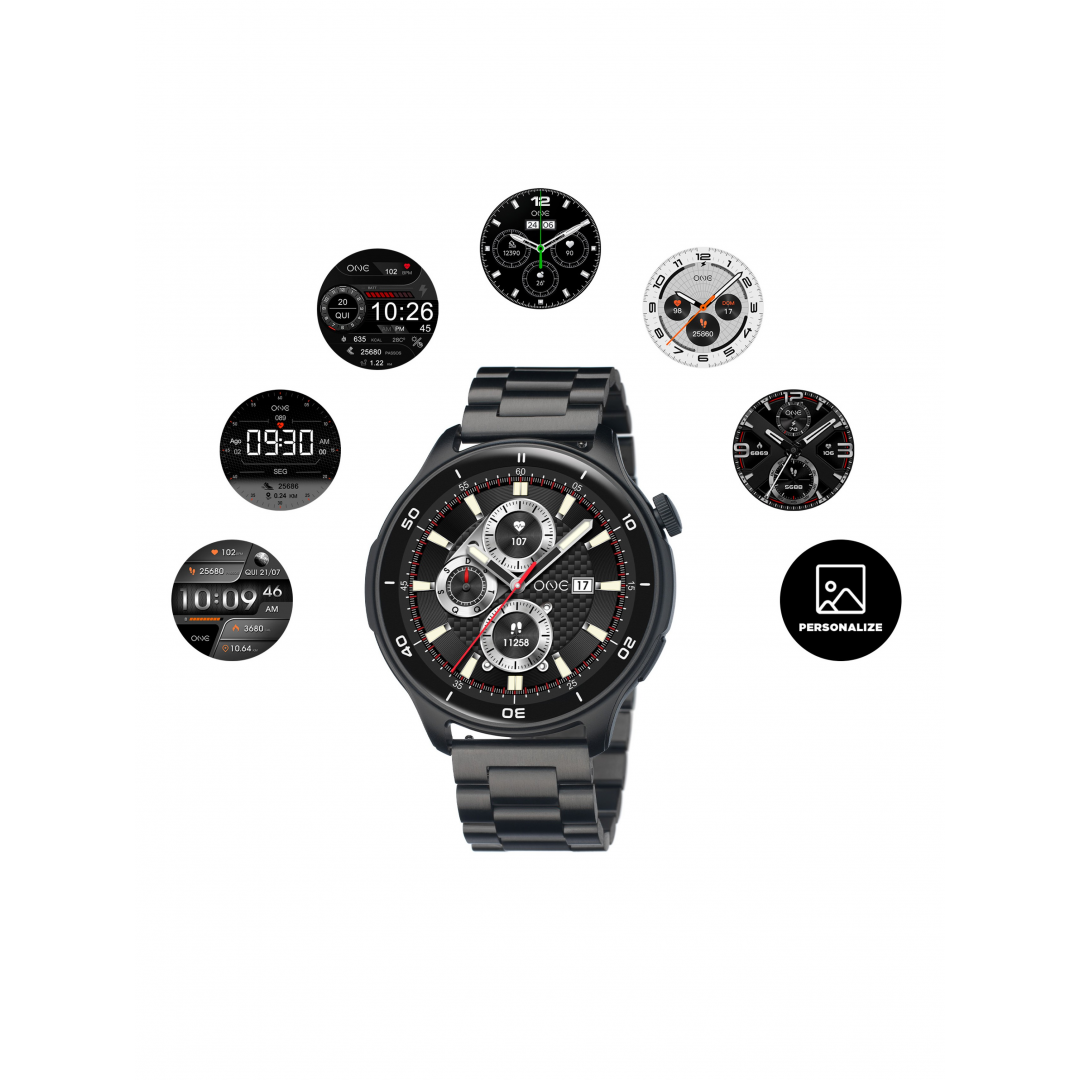O smartwatch One Men Explorer GPS, da geração 4, eleva a tua experiência ao próximo nível com a mais recente funcionalidade: GPS integrado, agora disponível em 5 modos de treino em tempo real: corrida, caminhada, ciclismo, trail running e trail walking. Esta inovação permite um acompanhamento mais preciso e autónomo das tuas rotas, mesmo sem o telemóvel por perto. Com um design robusto e masculino, o modelo apresenta uma bracelete em aço inoxidável preto e um ecrã AMOLED, que garante uma visualização nítida e vibrante. A função de comando por voz com tecnologia AI permite interagir com o telemóvel de forma prática e rápida diretamente a partir do smartwatch, todas as respostas e informações processadas são apresentadas no telefone. A ligação com a app One Smart completa a experiência, oferecendo monitorização de saúde, acompanhamento detalhado da atividade física e, agora, treinos com GPS em tempo real para quem vive com espírito de aventura. Combinando tecnologia de ponta e versatilidade, este smartwatch é a escolha ideal para quem quer estar sempre ligado e sempre no rumo certo.