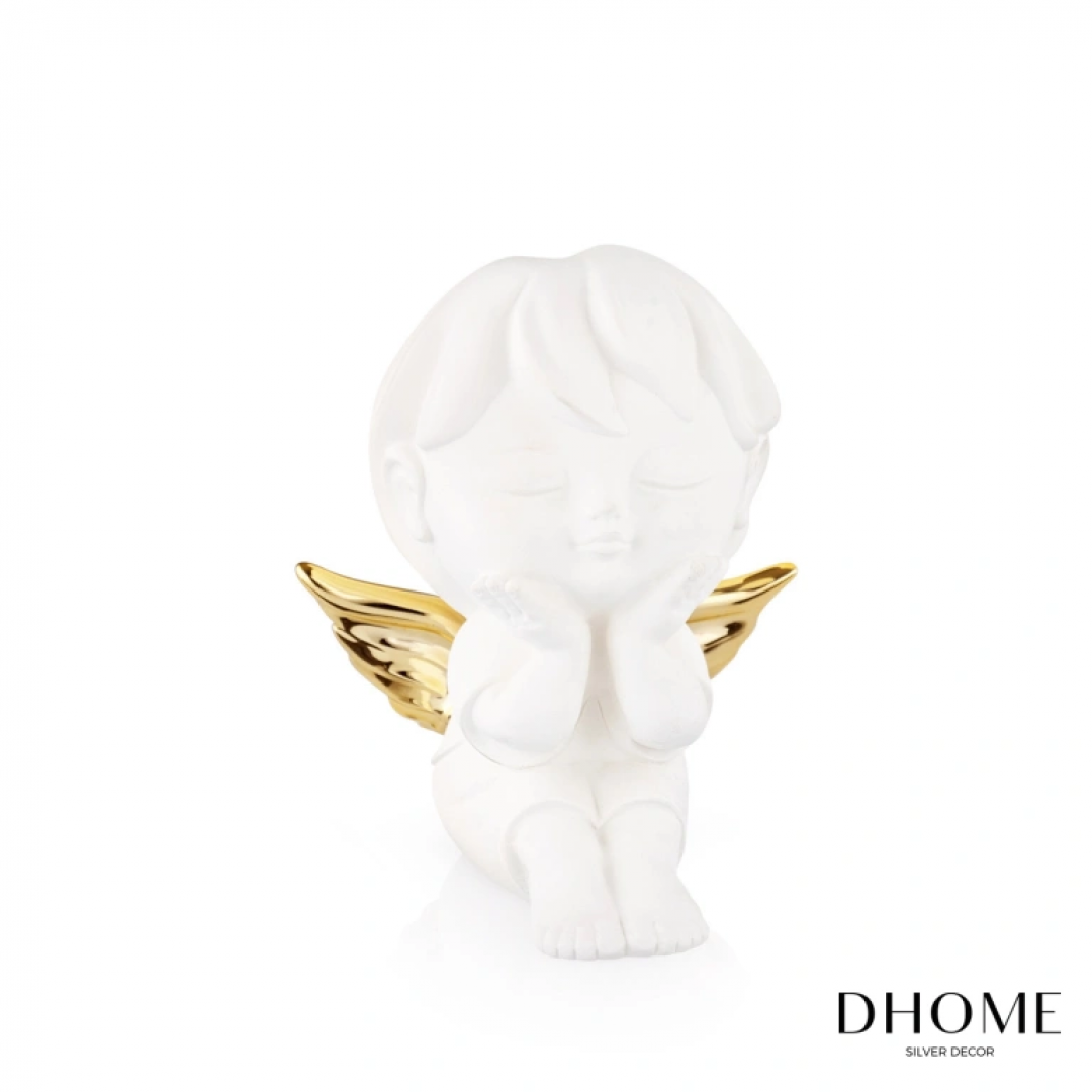 Bibelot decorativo anjo em PVD prateado. Medida: 9.5cm